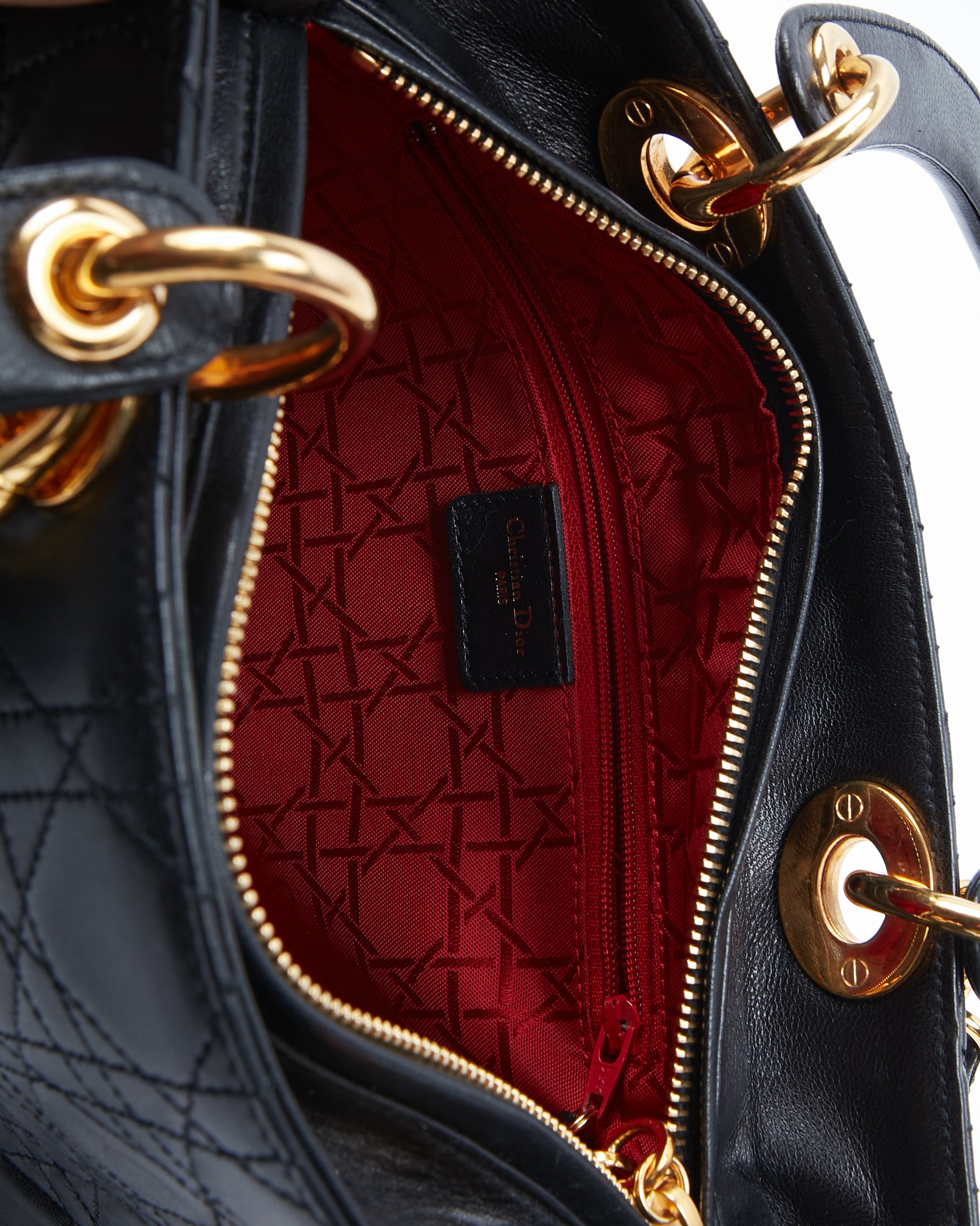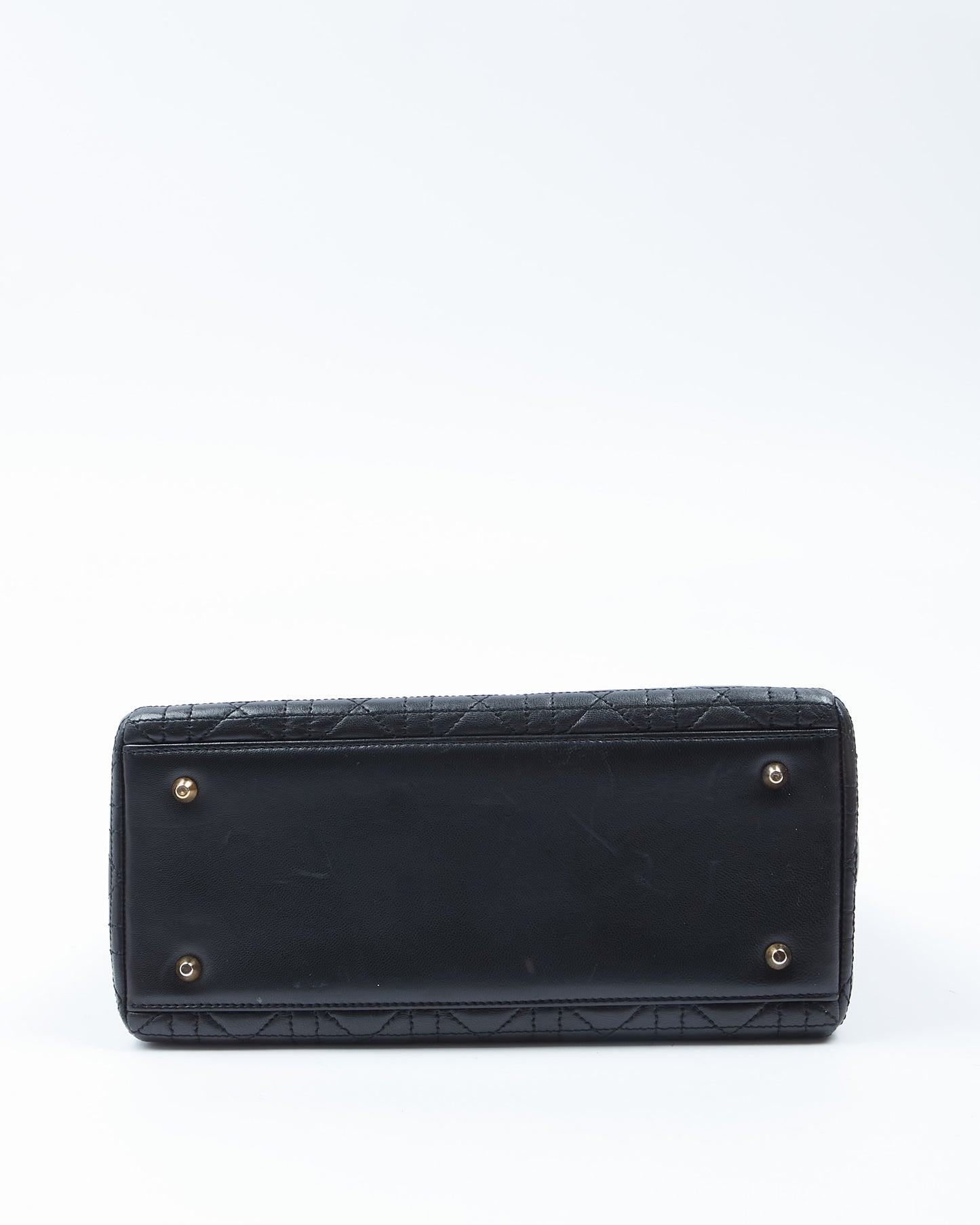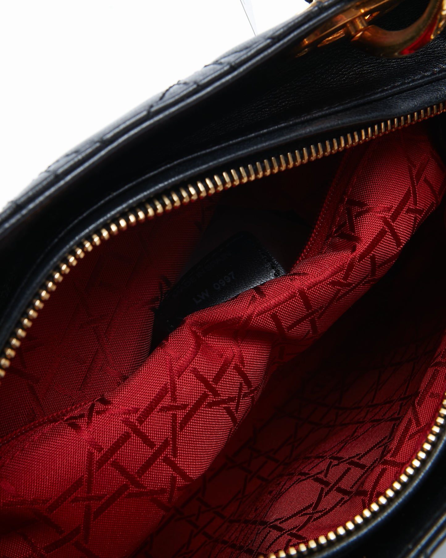 Black Leather Vintage Cannage Medium Lady Dior Bag