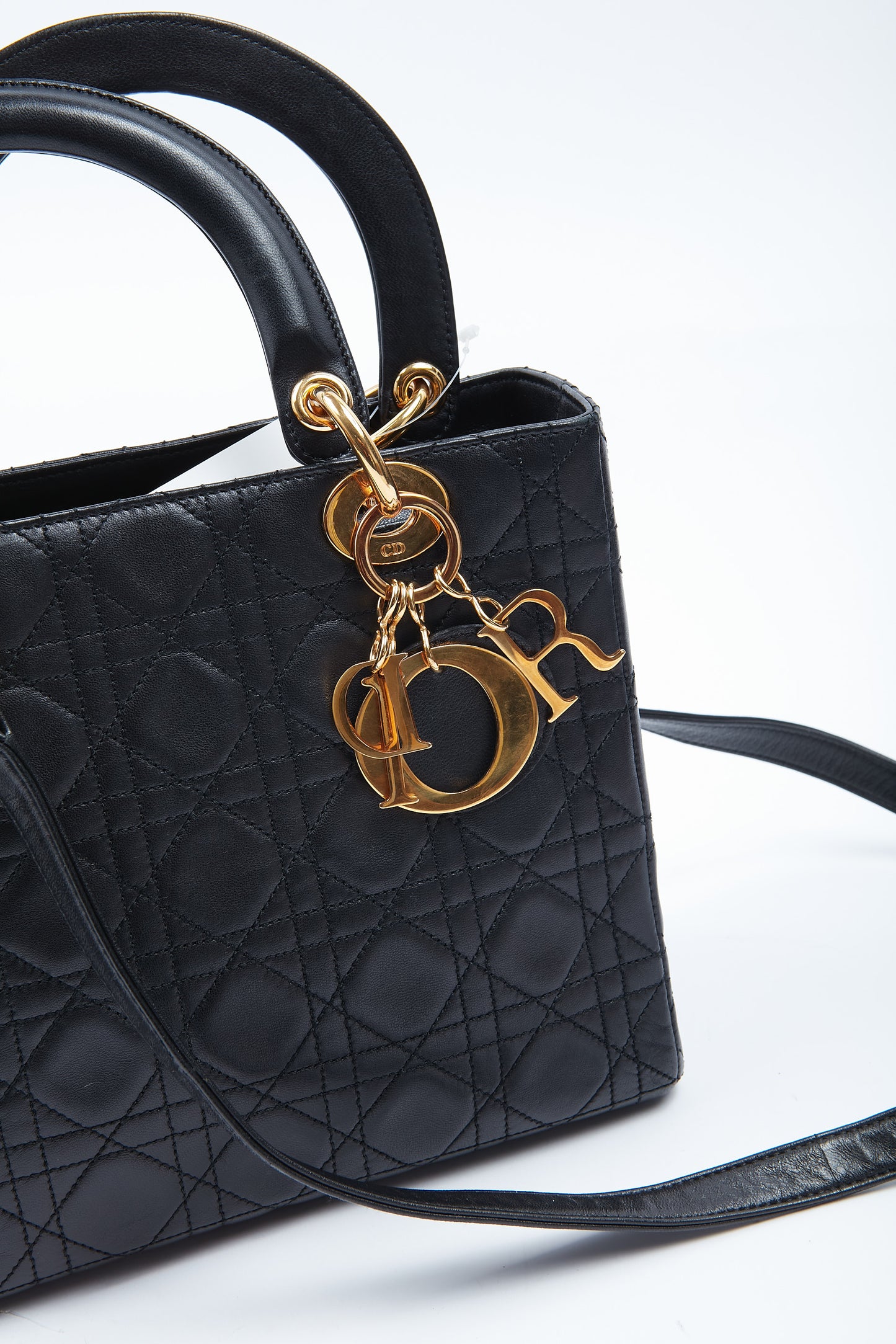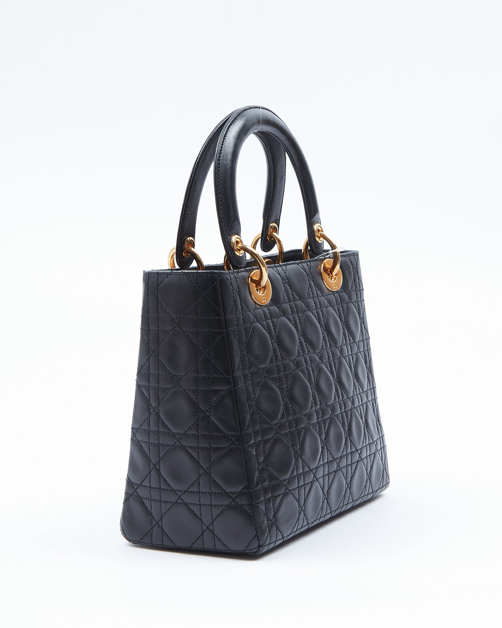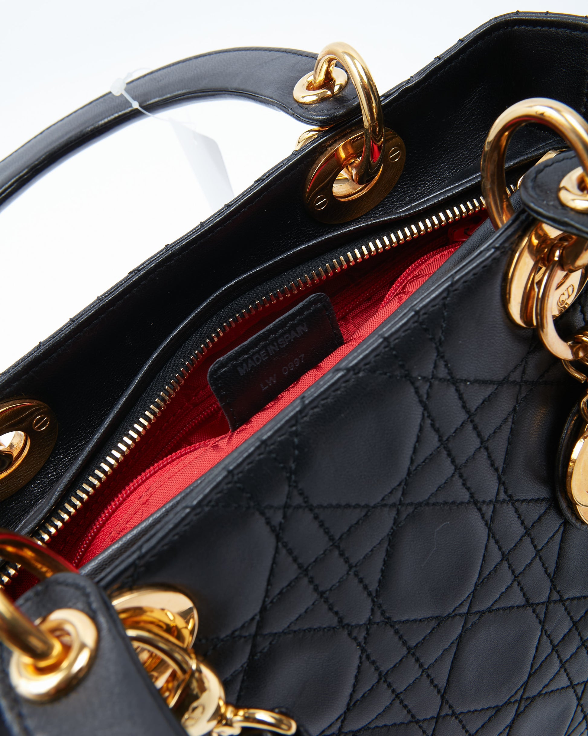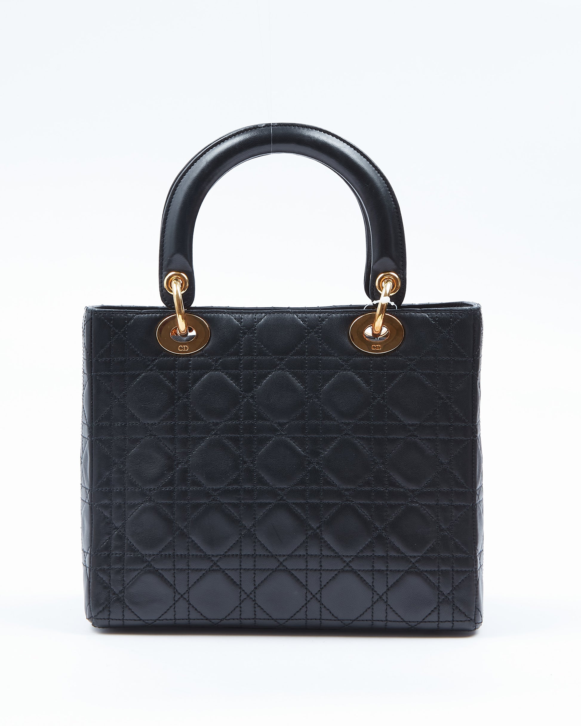 Black Leather Vintage Cannage Medium Lady Dior Bag