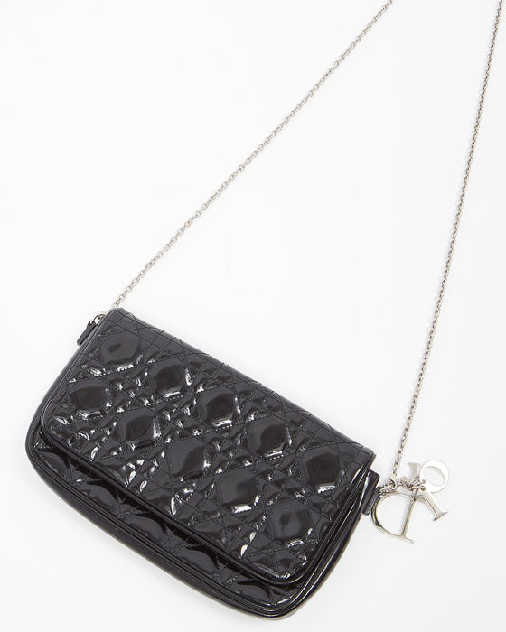 Black Patent Cannage Pouch Chain Crossbody