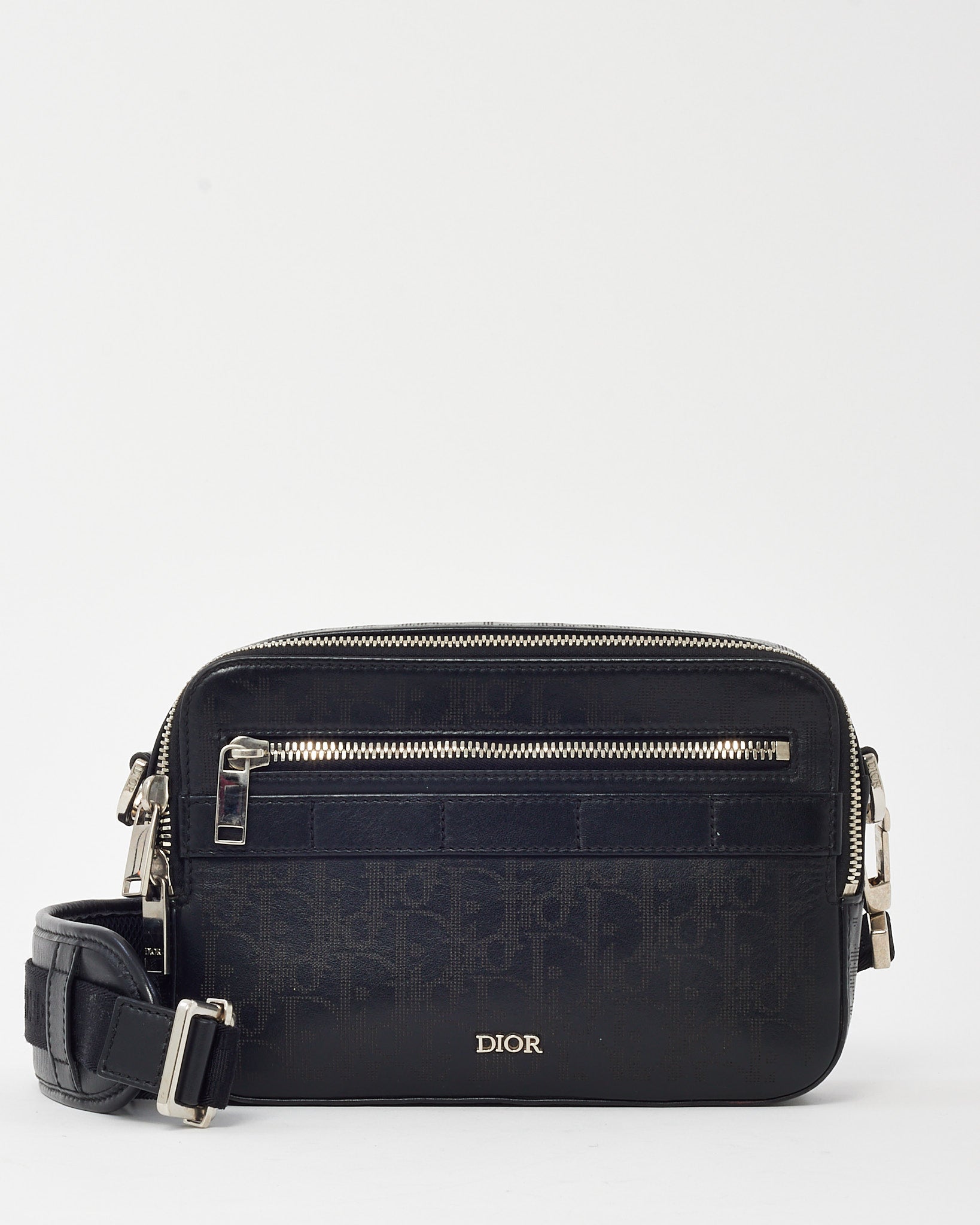 Elevate your everyday carry with this pre-loved authentic Dior Black Perforated Monogram Oblique Calfskin Leather Galaxy Safari Messenger Bag. Crafted in supple calfskin with Dior’s iconic Oblique motif subtly perforated into the leather, this sleek messenger bag blends luxury with function. Featuring multiple compartments, a spacious interior, and an adjustable shoulder strap, it offers both utility and refined style for the modern urban wardrobe.