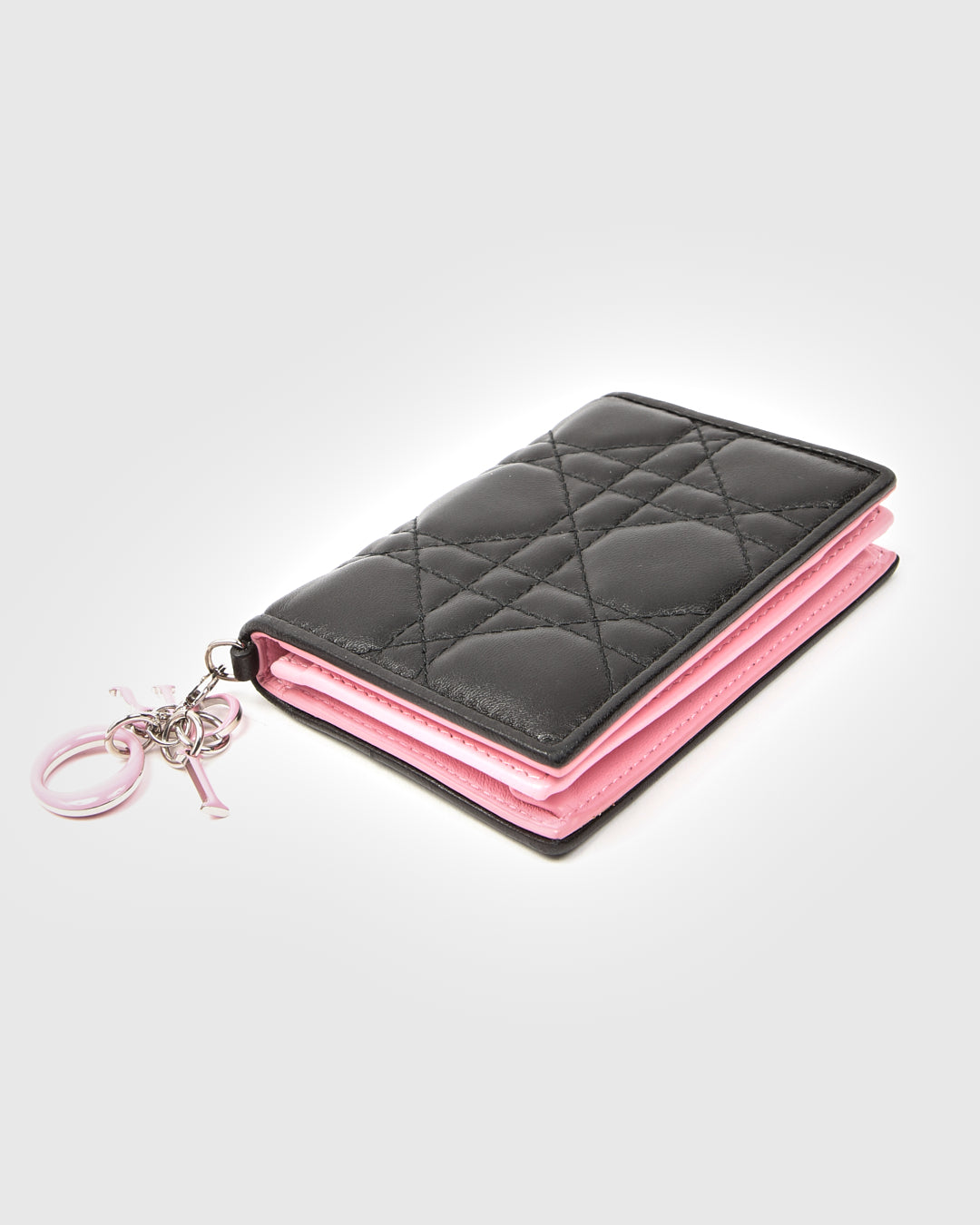 Black/Pink Leather Cannage Lady Dior Mini Wallet