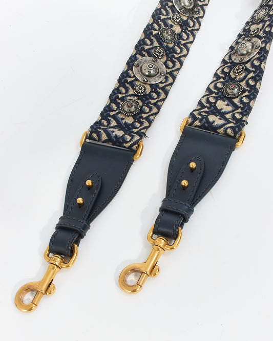 Blue Canvas Oblique Embroidery Medallion Strap with Ring