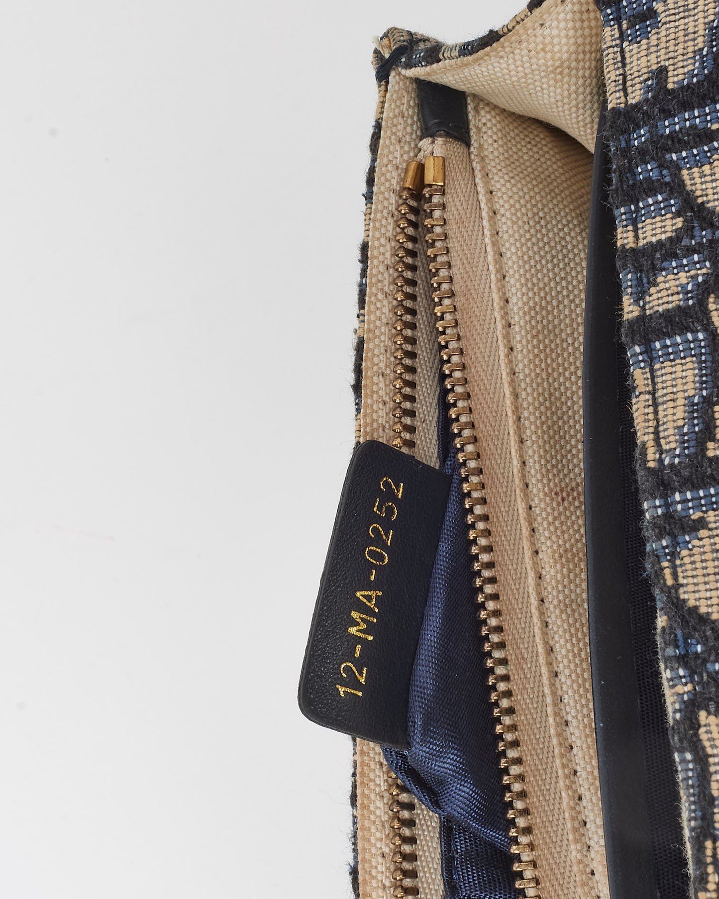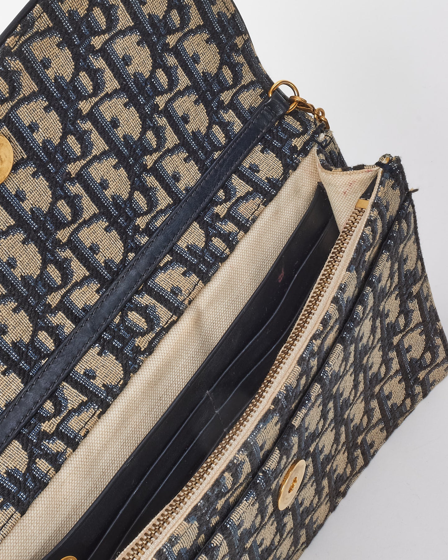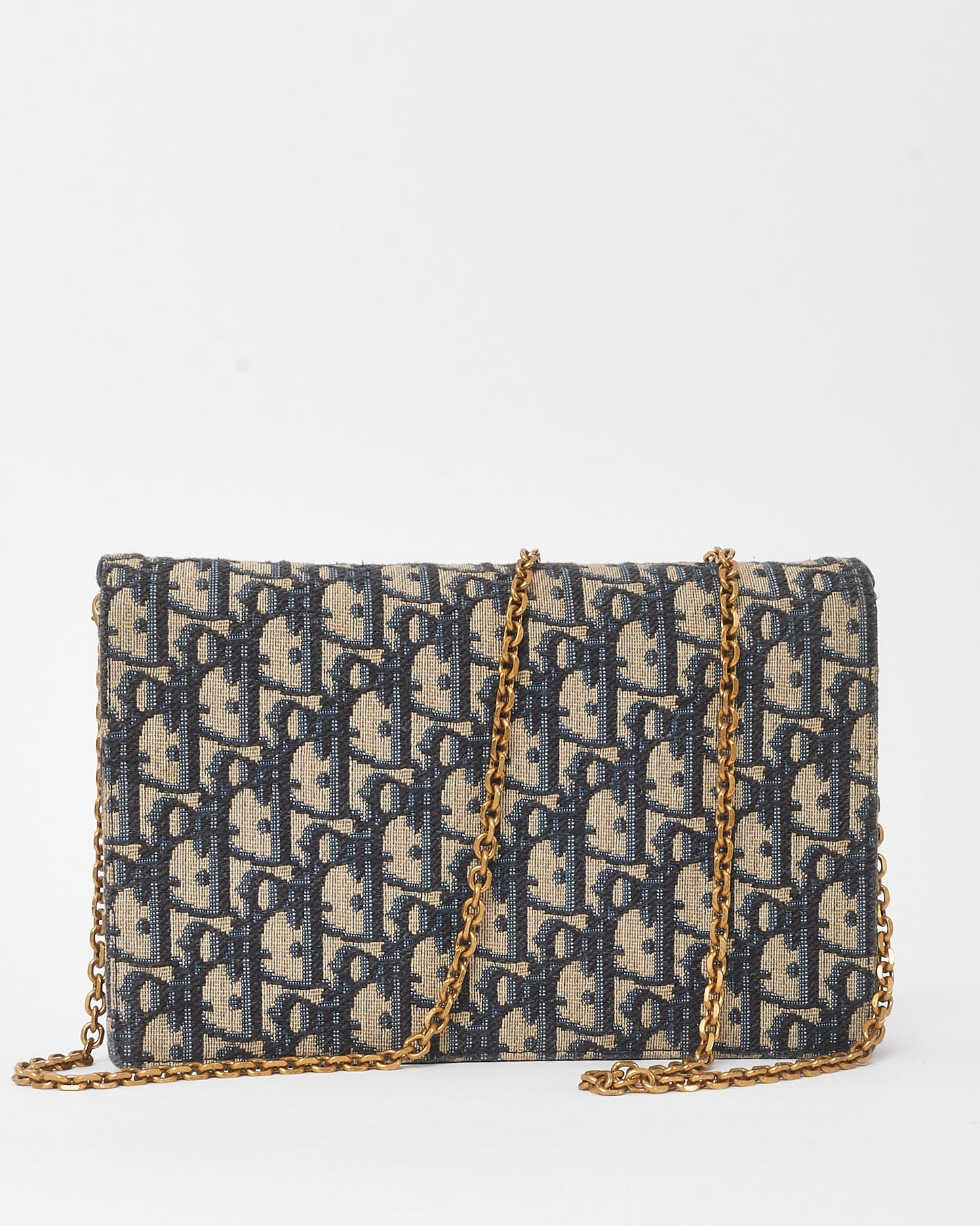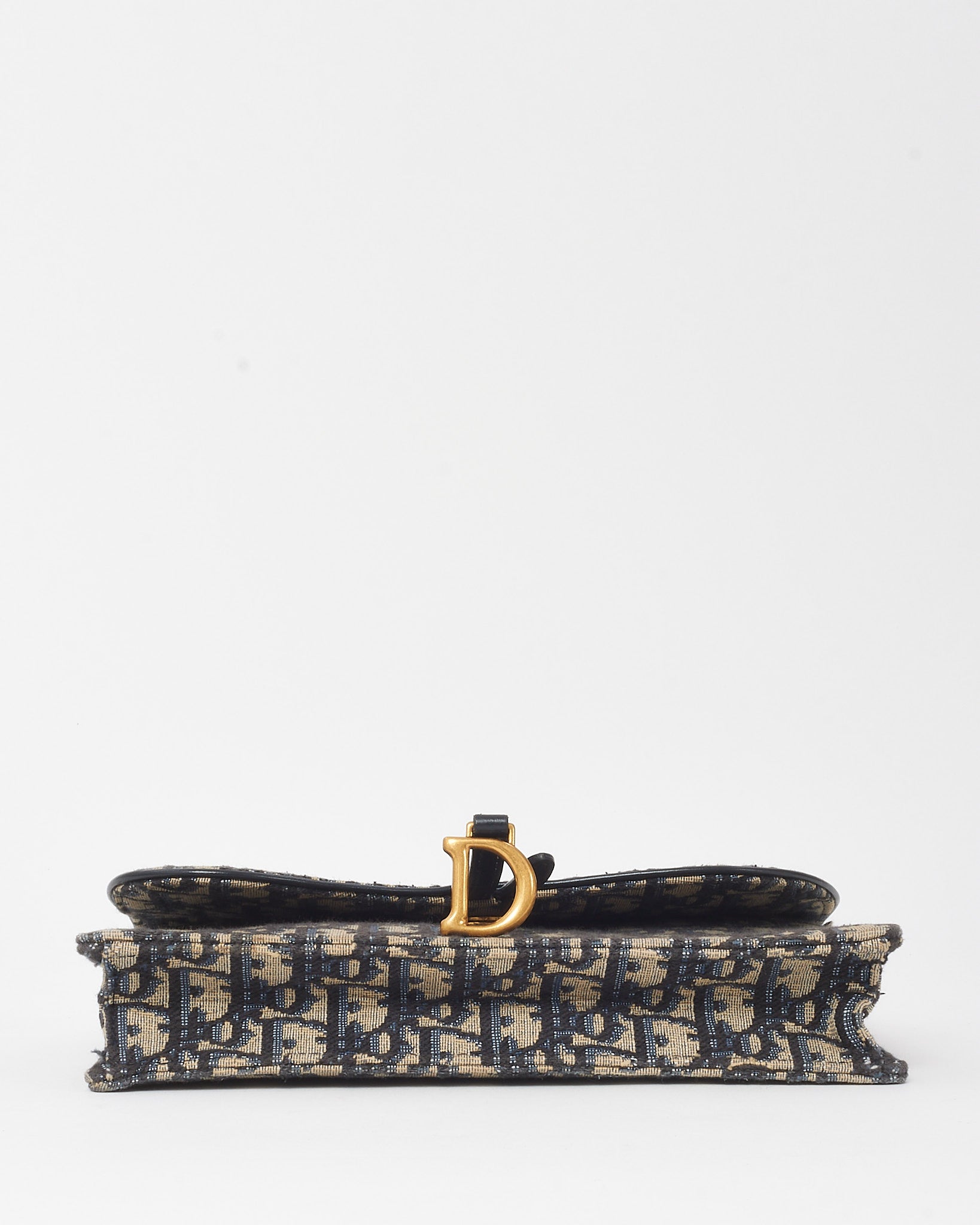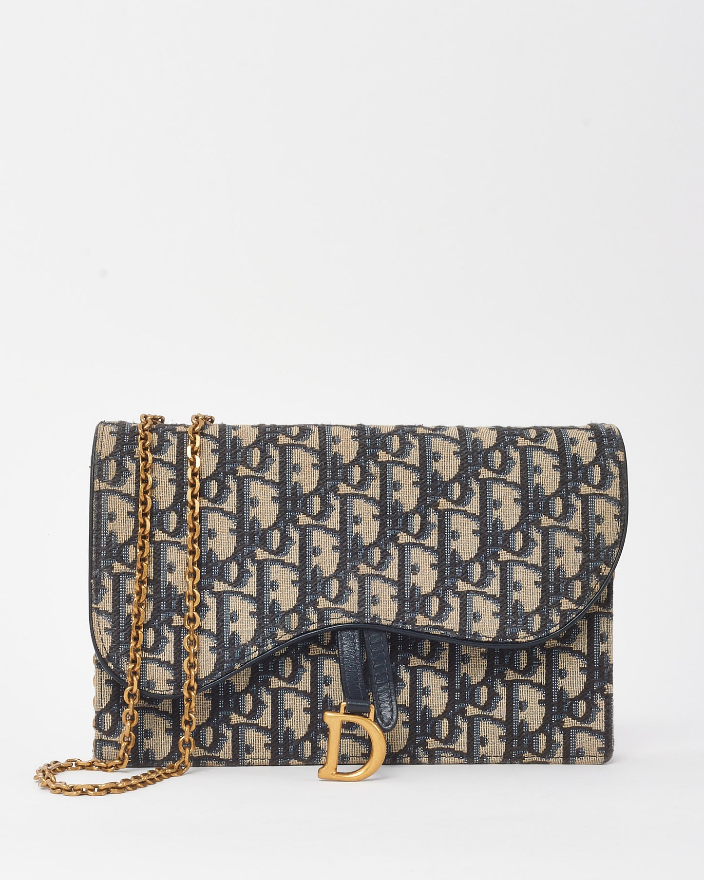 A modern icon in a compact silhouette, this pre-owned authentic Dior Saddle Pouch is crafted from the house’s signature blue Oblique jacquard canvas with tonal leather trim. Featuring the iconic curved flap and antique gold-tone ‘D’ charm, it’s finished with a removable chain strap for elegant shoulder or crossbody wear.