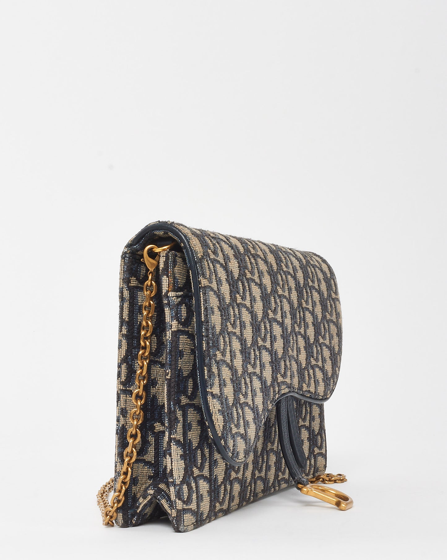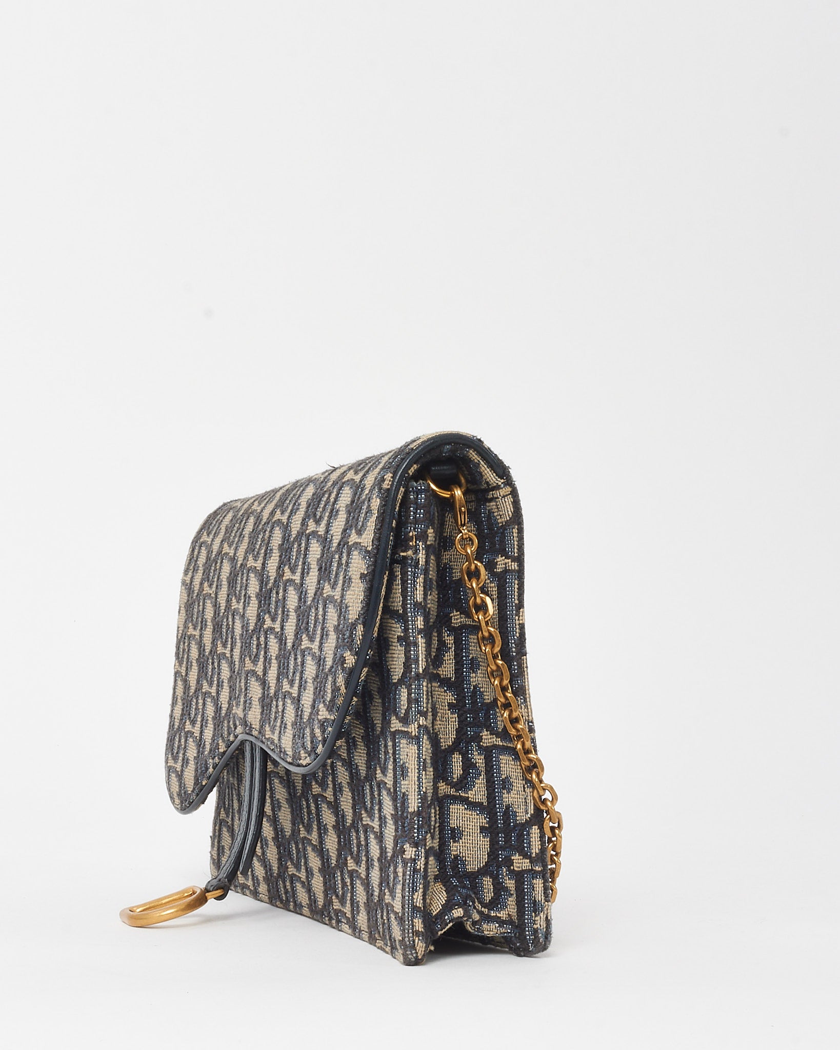 Blue Oblique Jacquard Canvas Medium Saddle Pouch with Chain