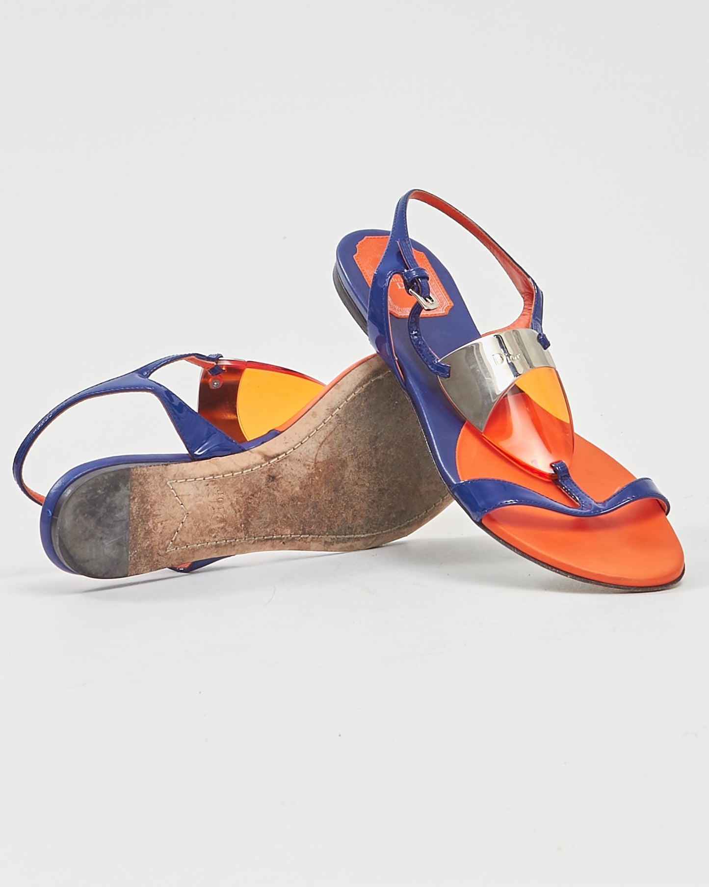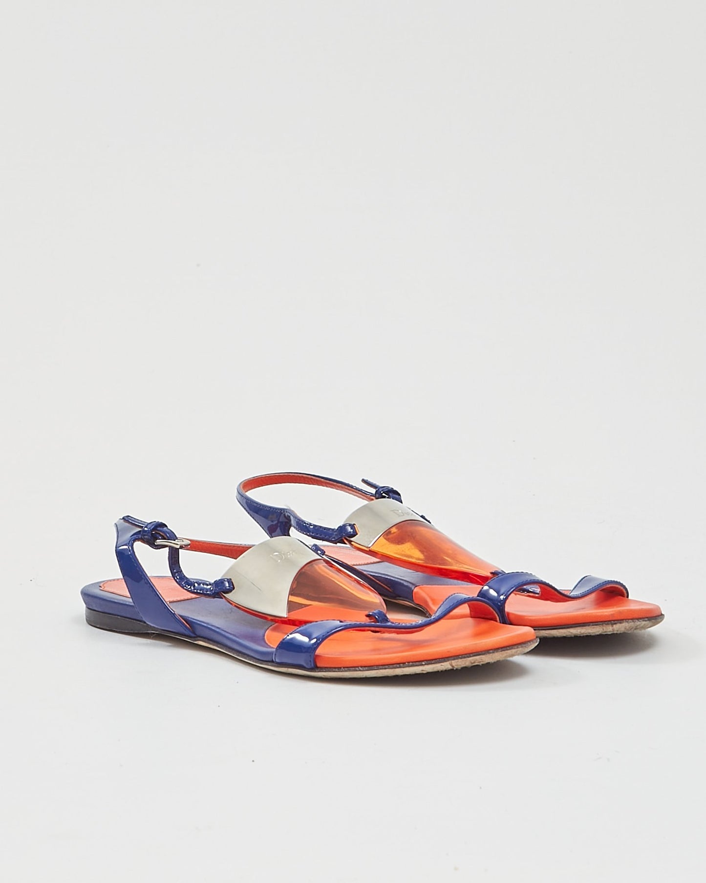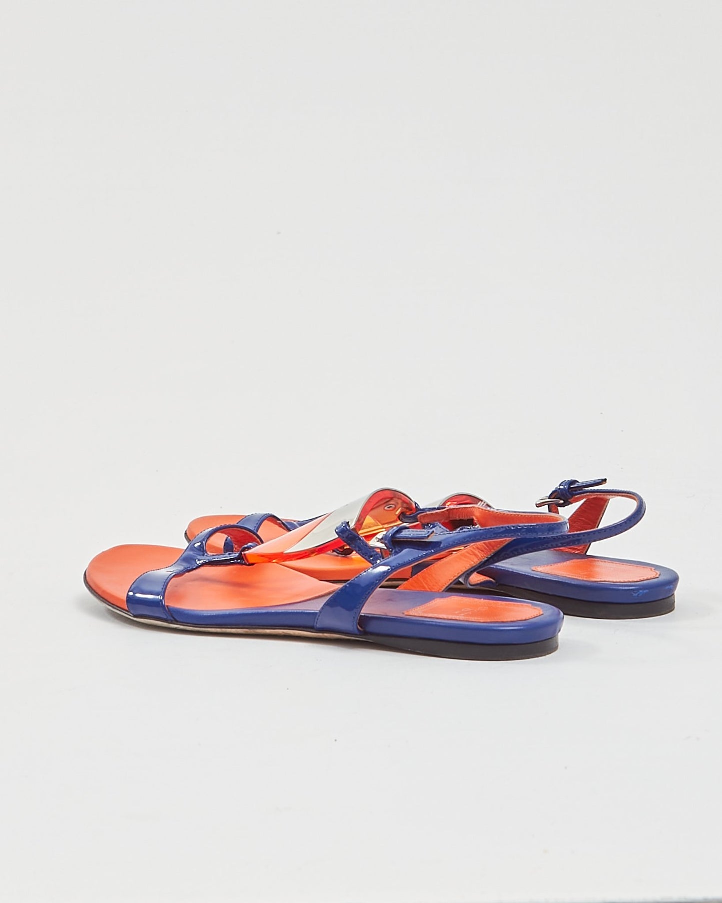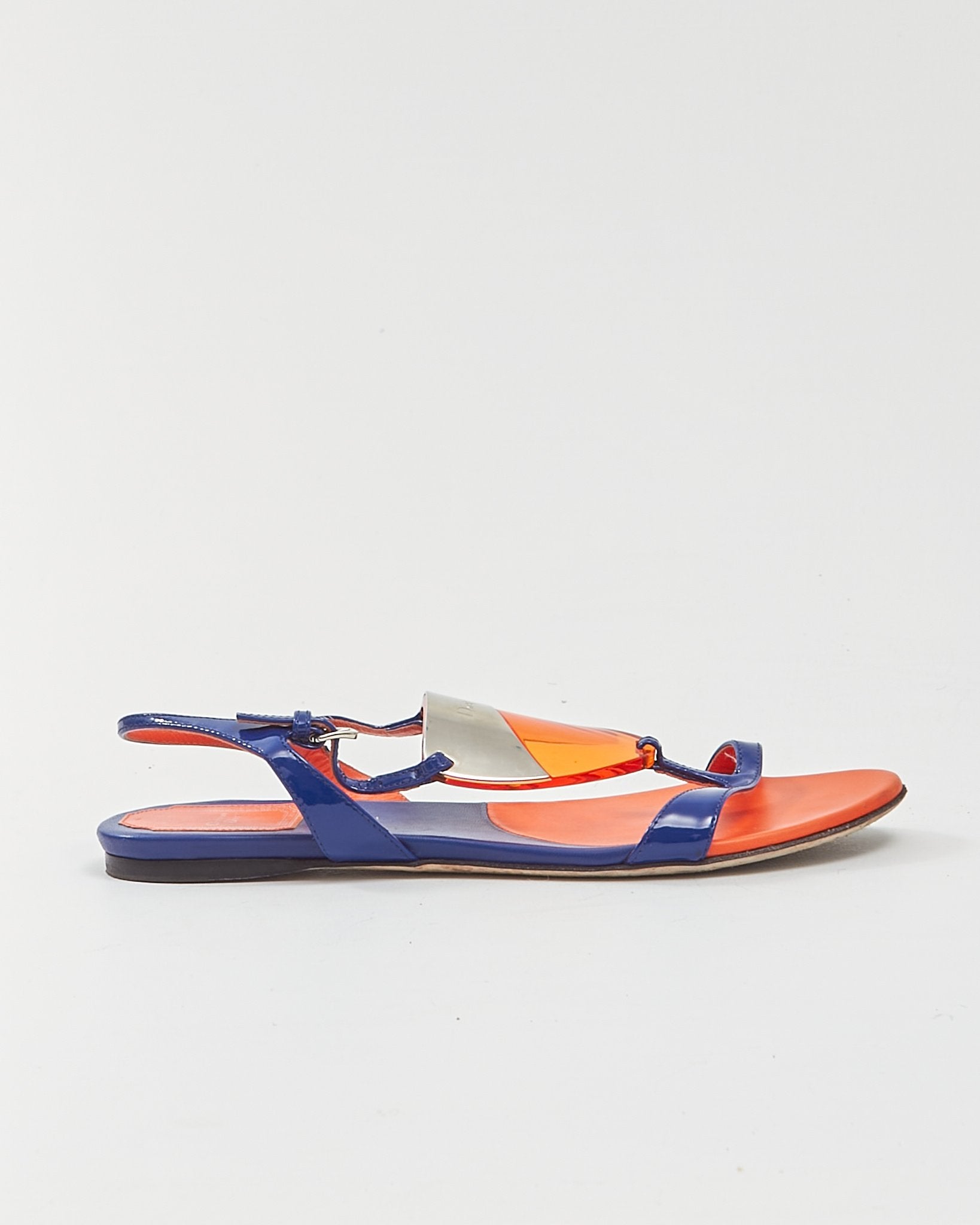 Blue/Orange Enamel & Leather Strap Sandals - 37.5