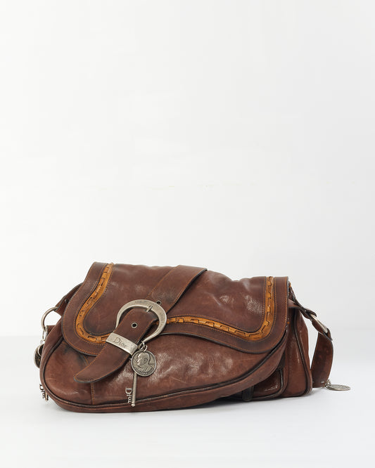 Brown Leather Double Saddle Gaucho Shoulder Bag