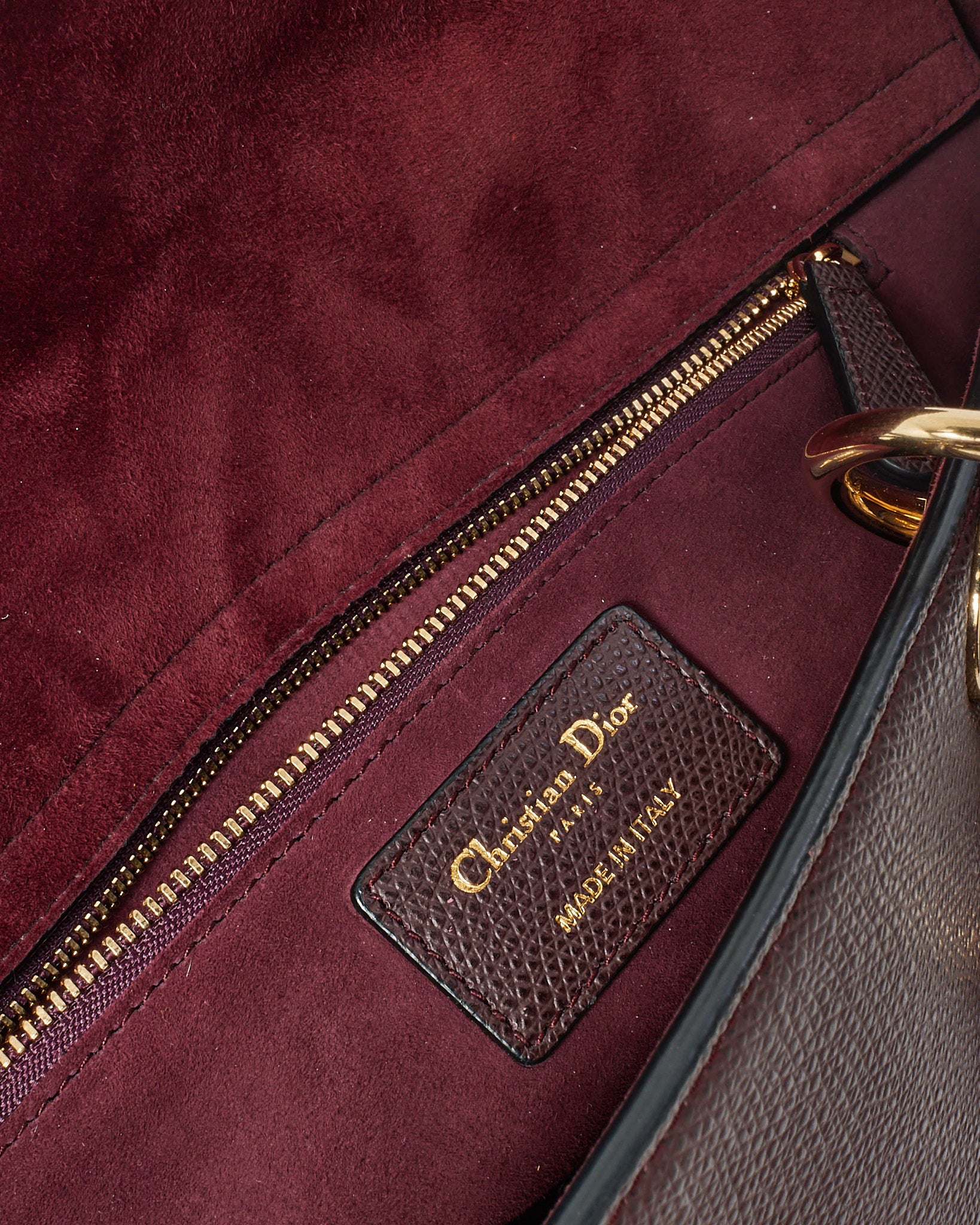 Burgundy Grained Calfskin Leather Large Lady Dior Bag GHW with NO STRAP