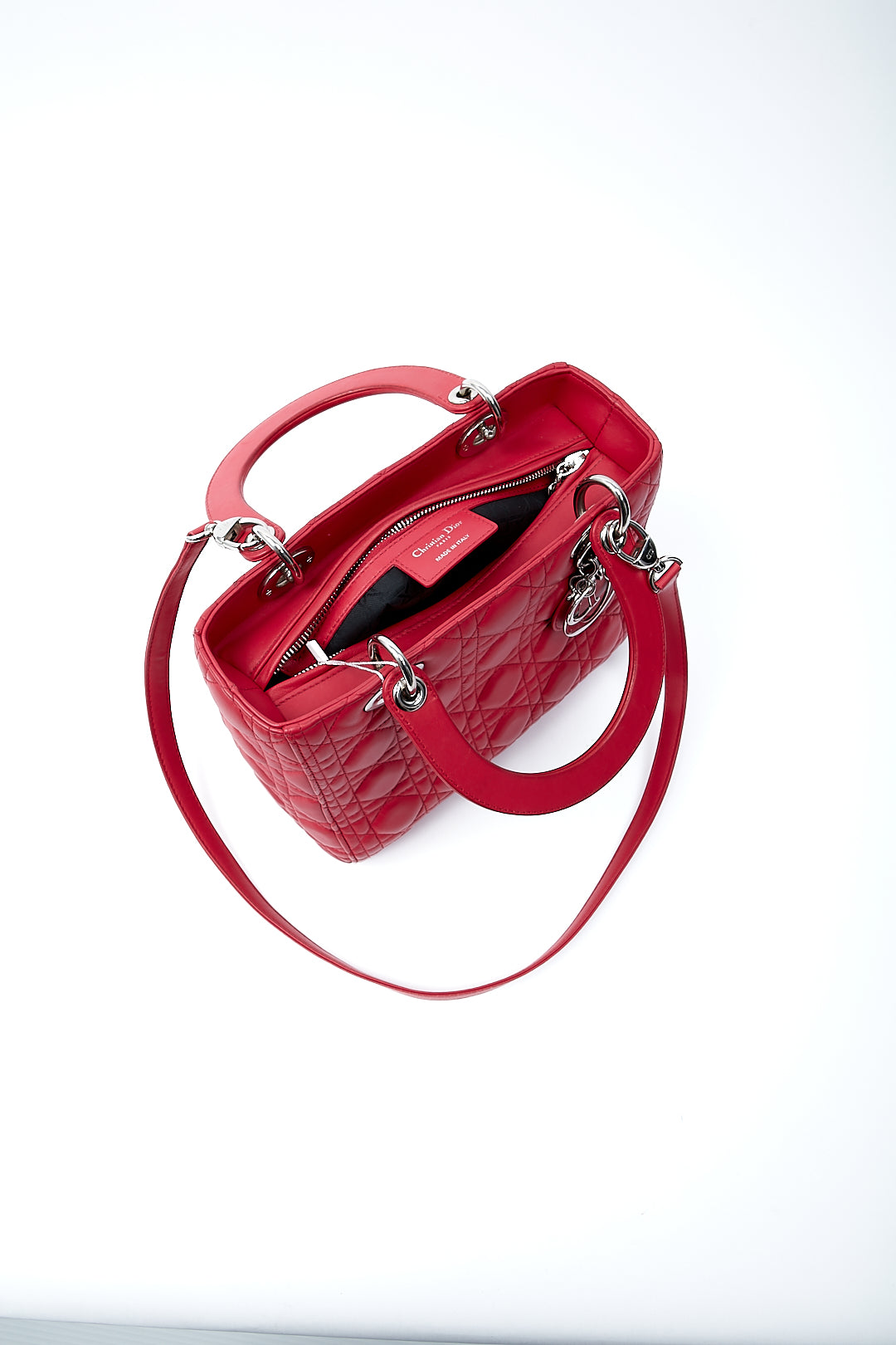 Cherry Red Leather Cannage Medium Lady Dior Bag