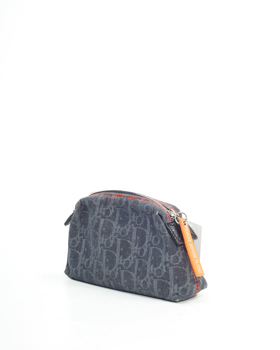 Denim Blue Canvas Oblique Cosmetic Pouch