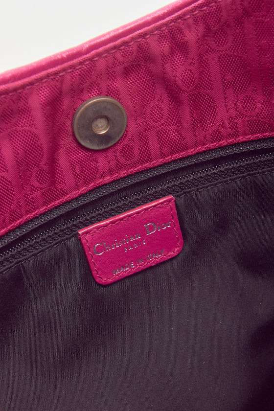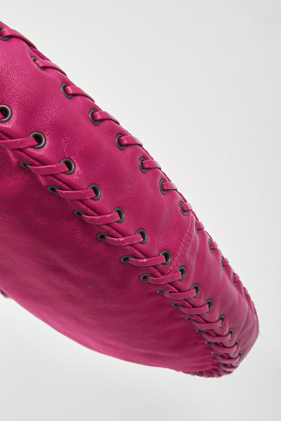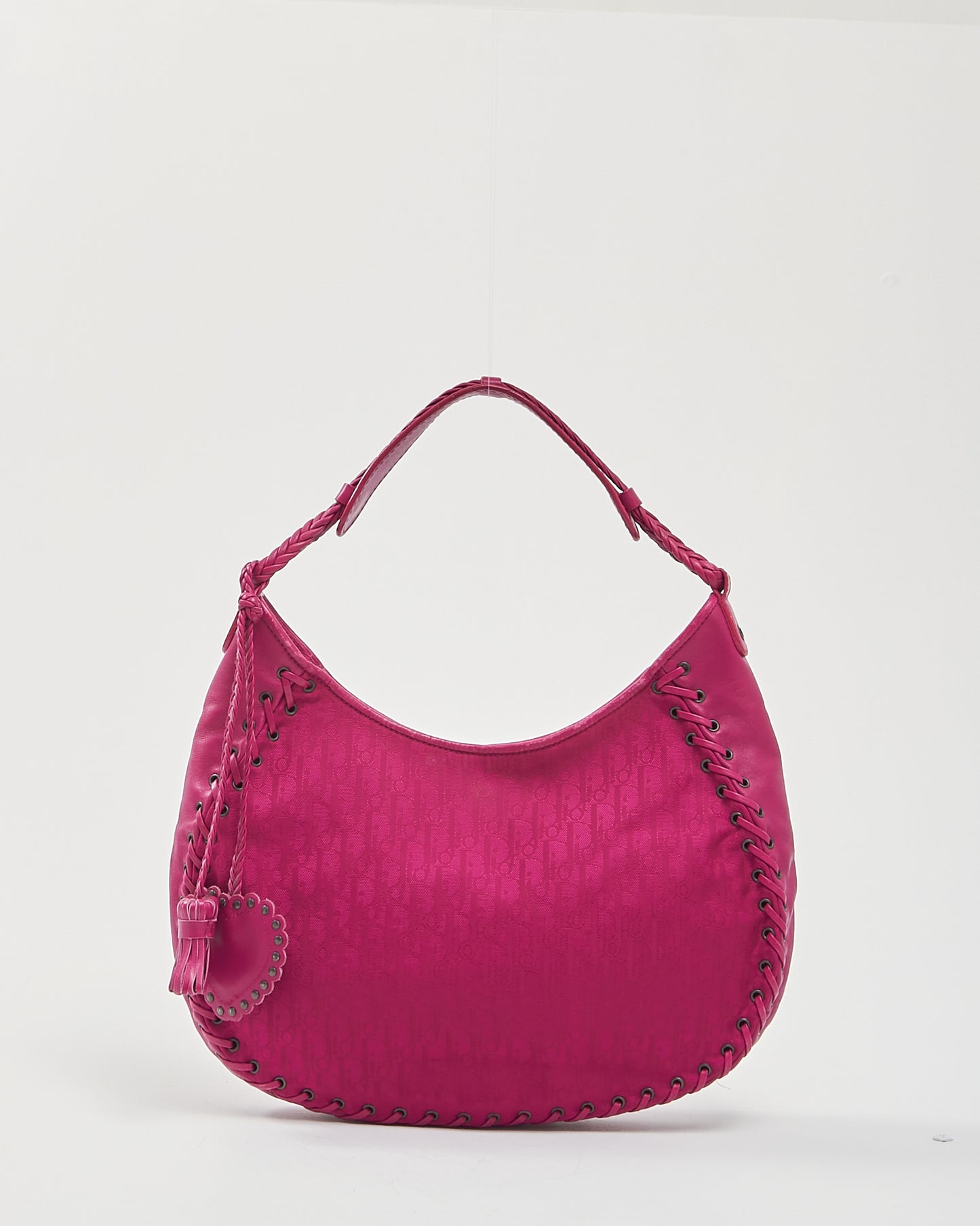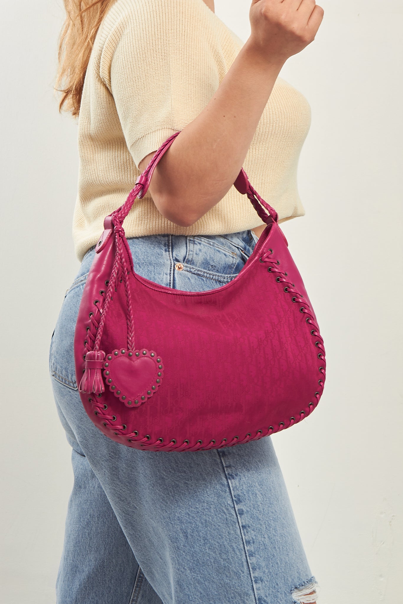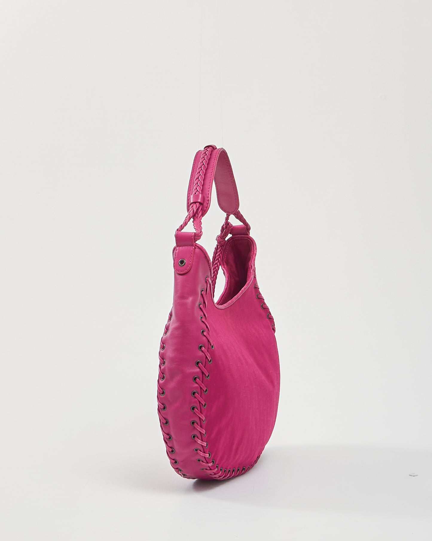 Fuchsia Fabric/Leather Oblique Shoulder Bag