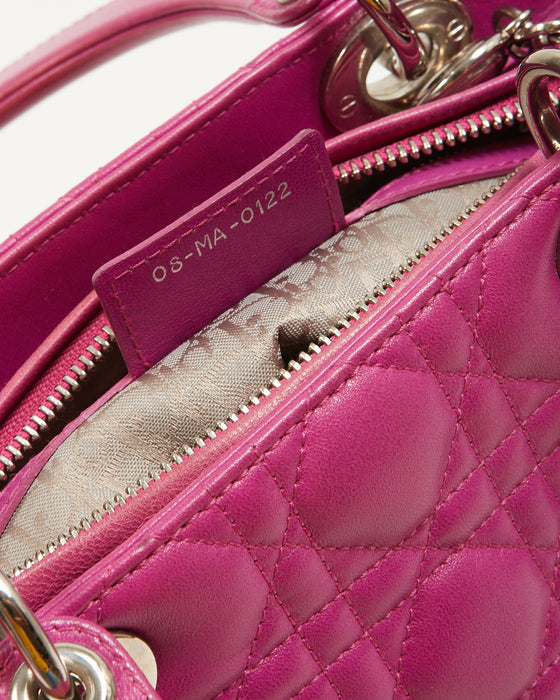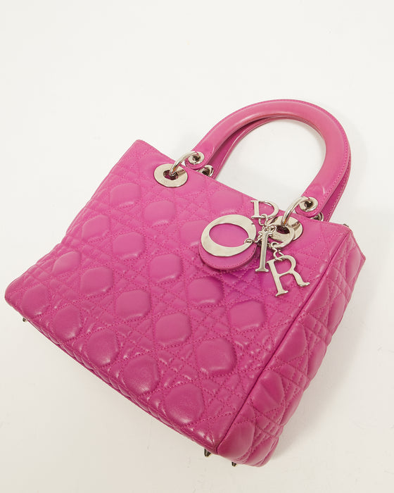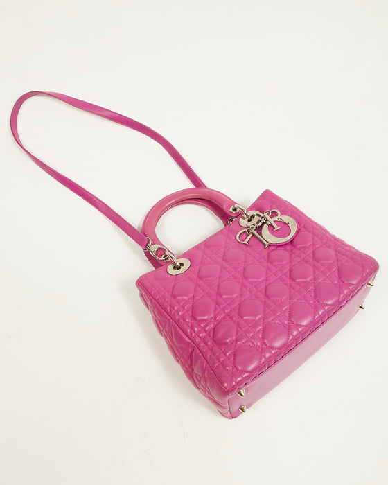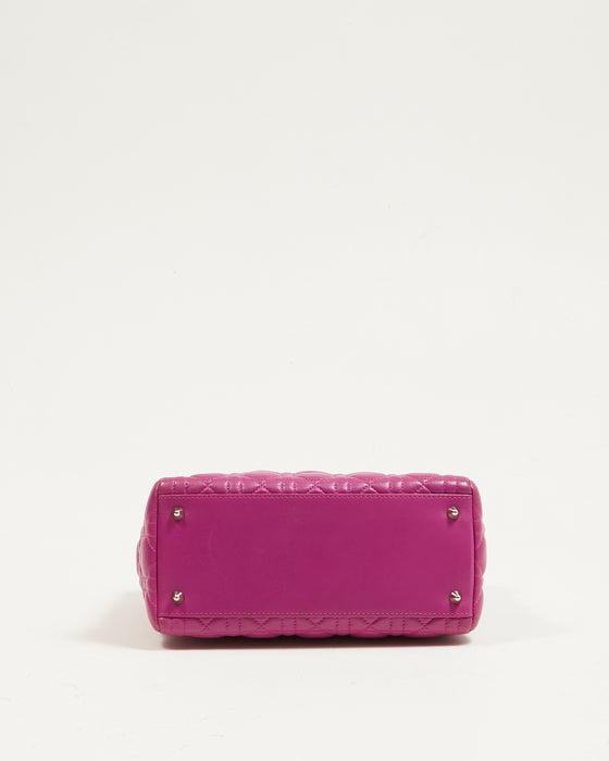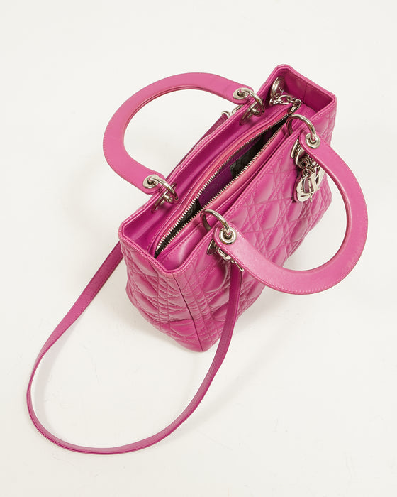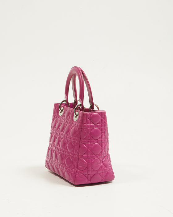 Fuchsia Pink Lambskin Cannage Medium Lady Dior Tote