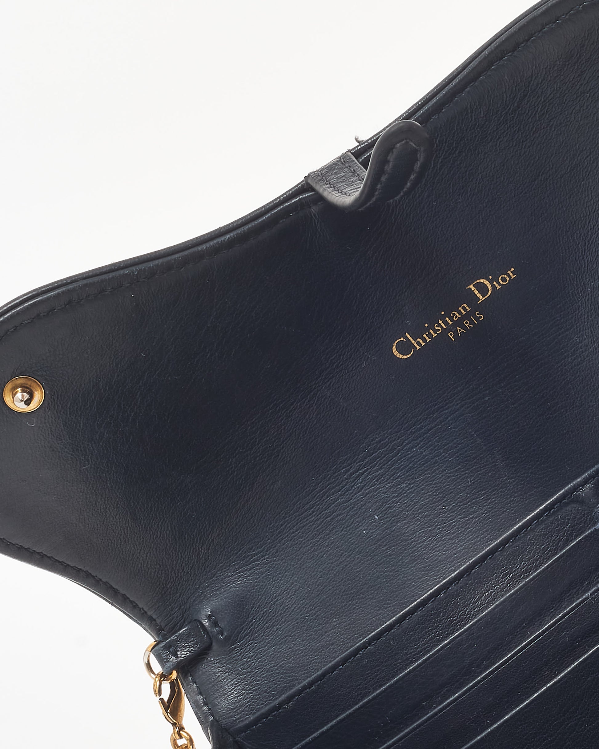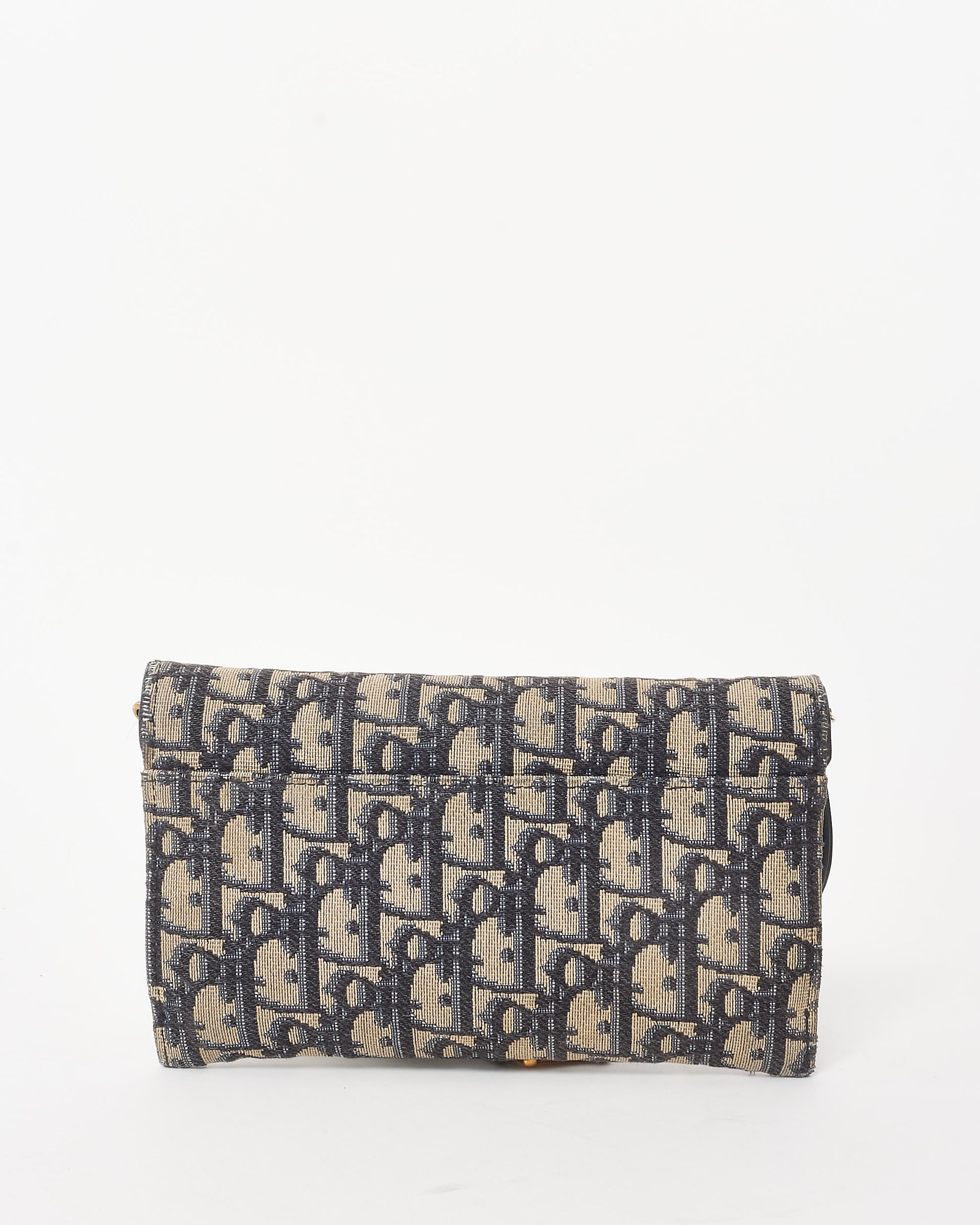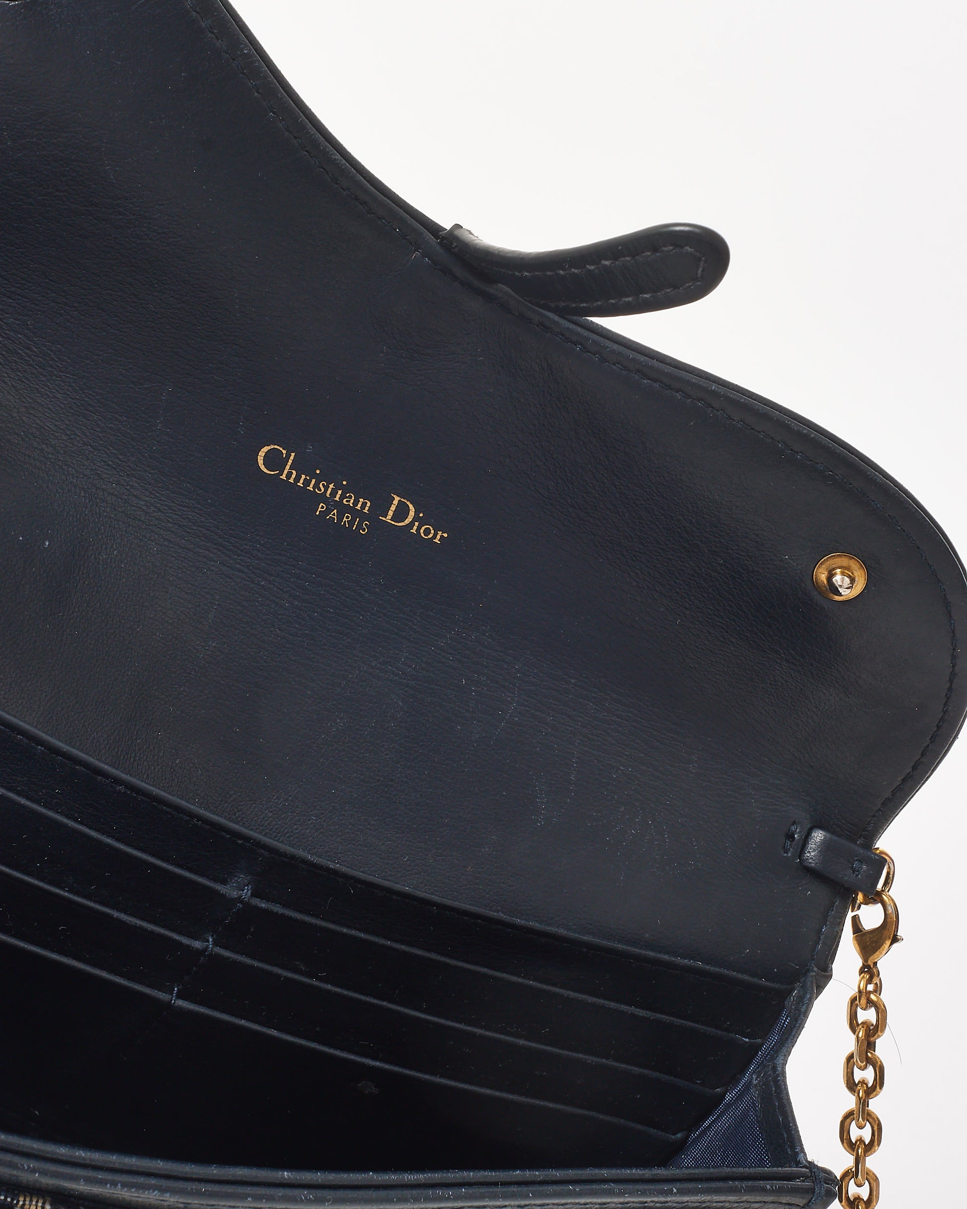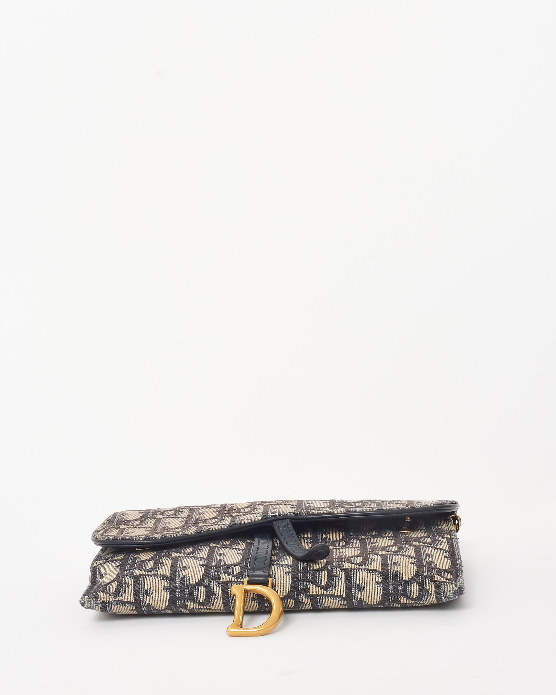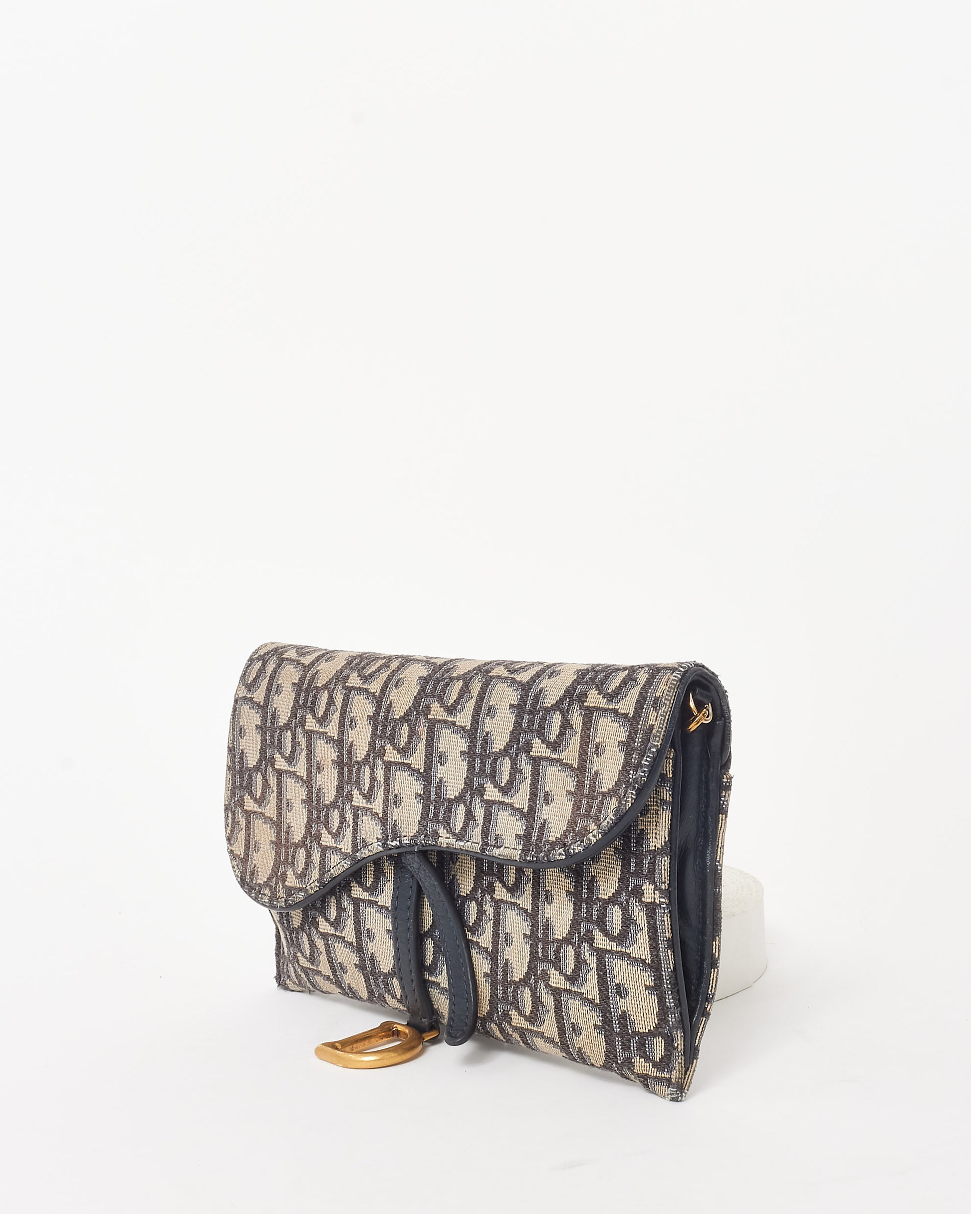 Navy Oblique Canvas Small Saddle Wallet on Chain Crossbody Bag