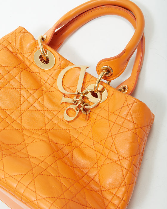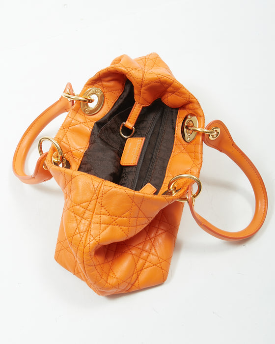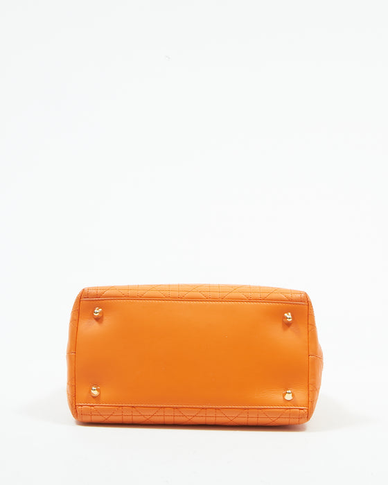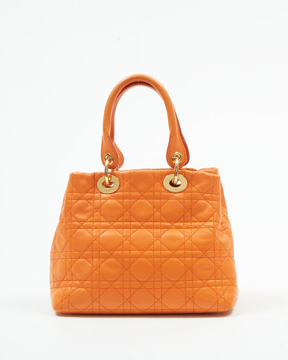 Orange Leather Cannage Small Tote Bag