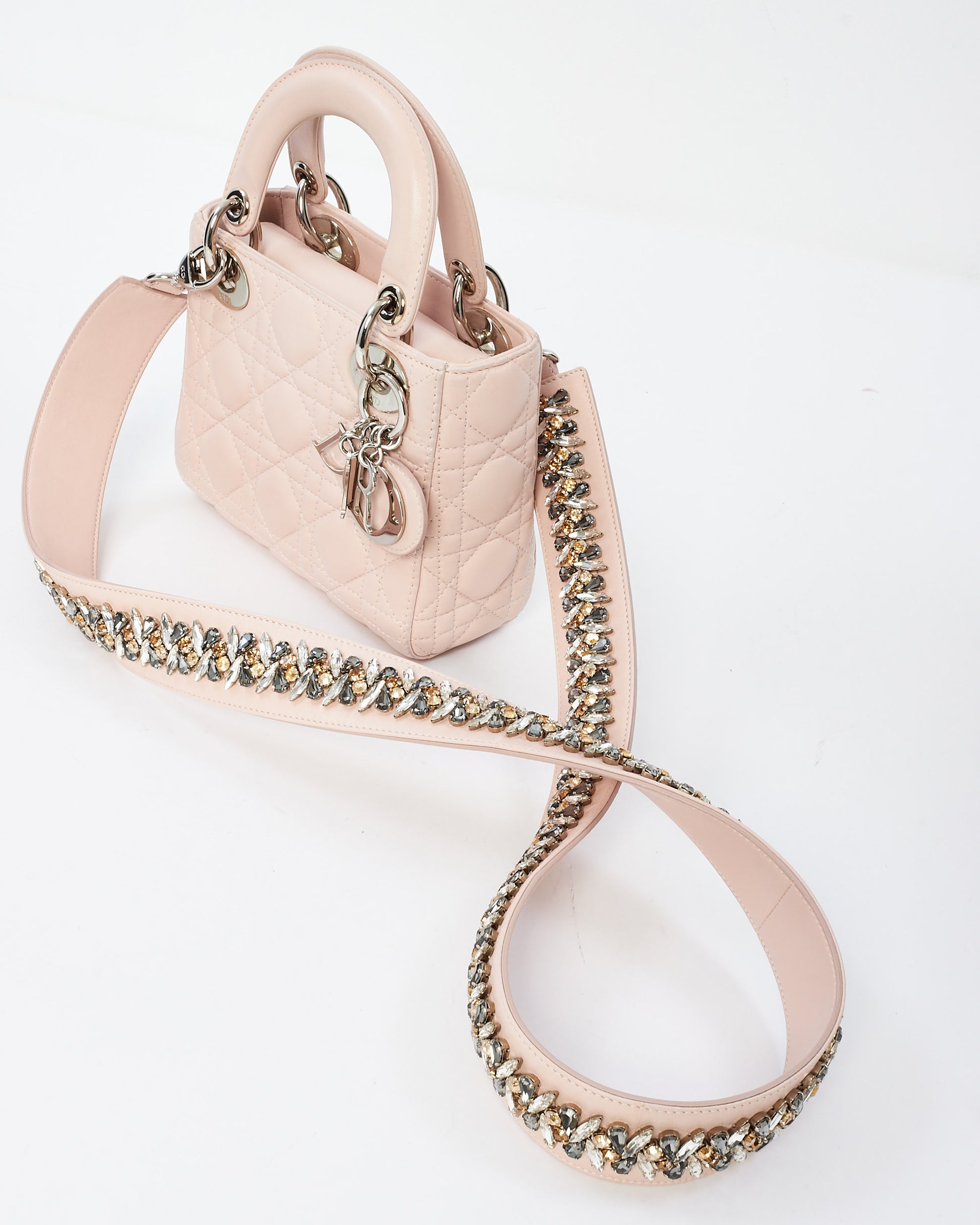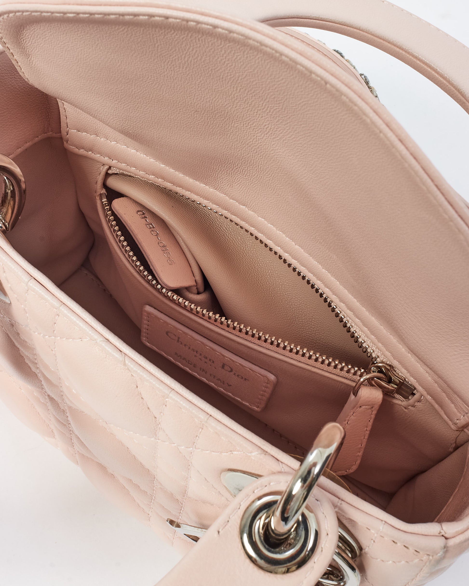 Light Pink Lambskin Leather Cannage Mini Lady Dior Bag w/ Jewel Strap