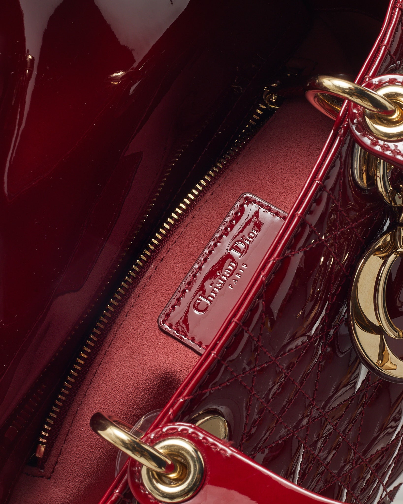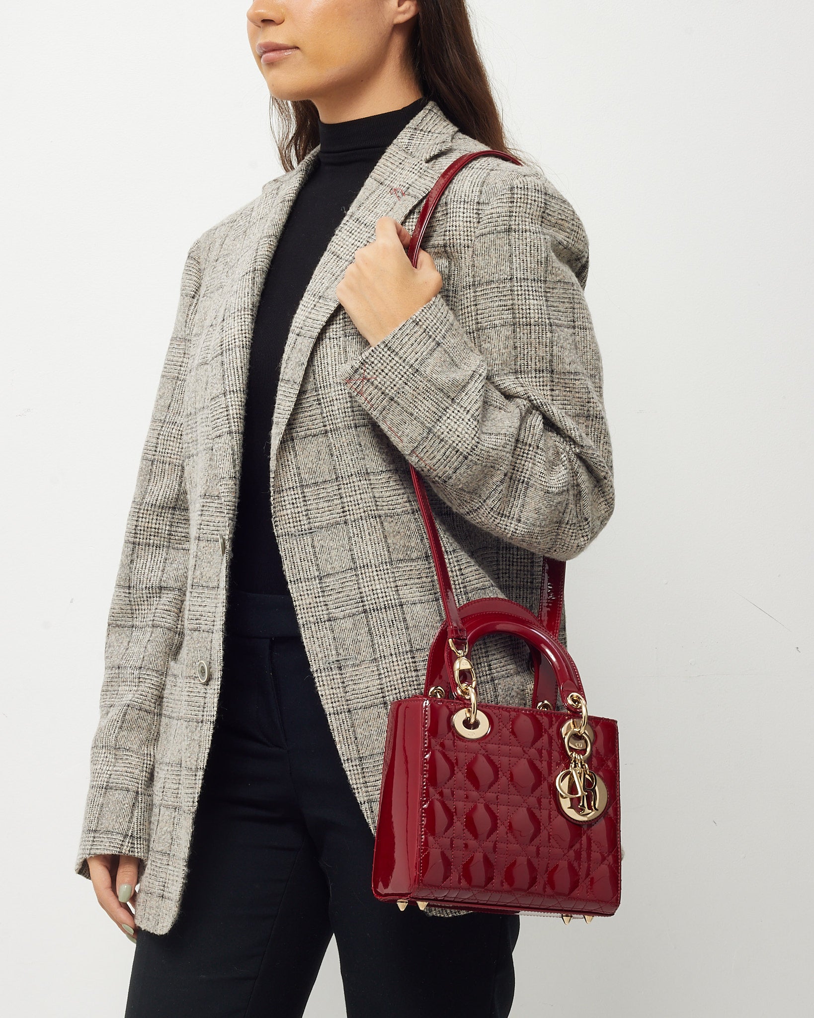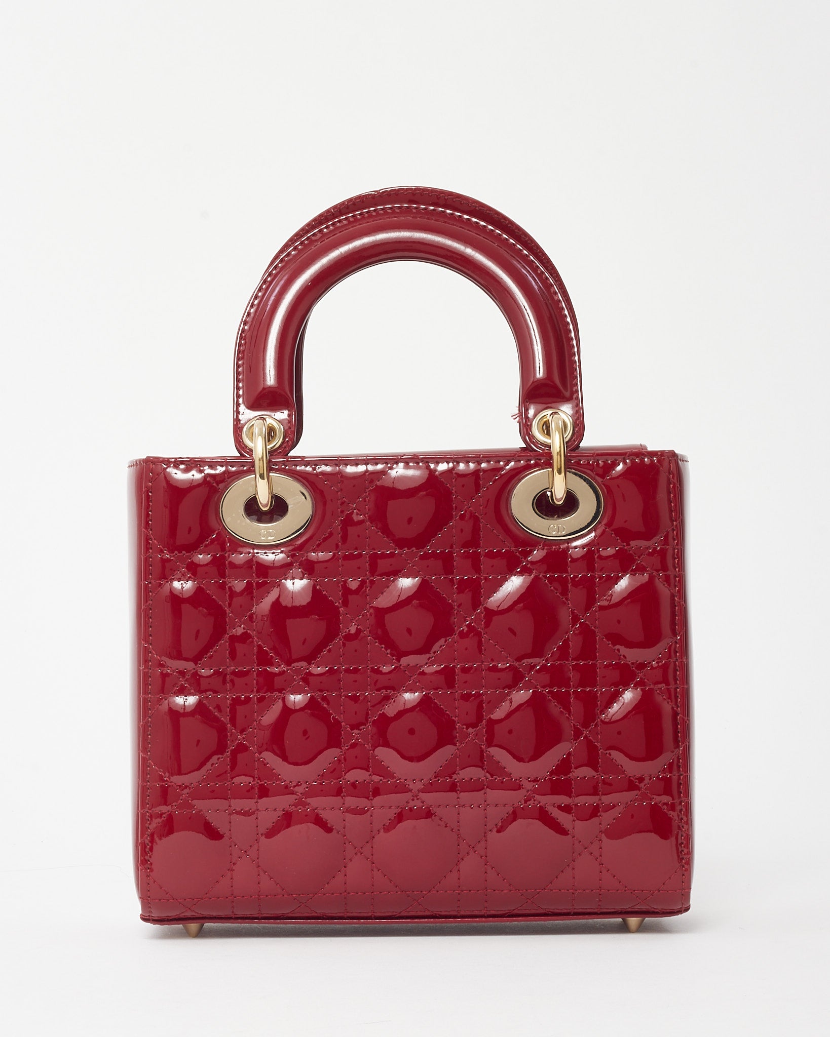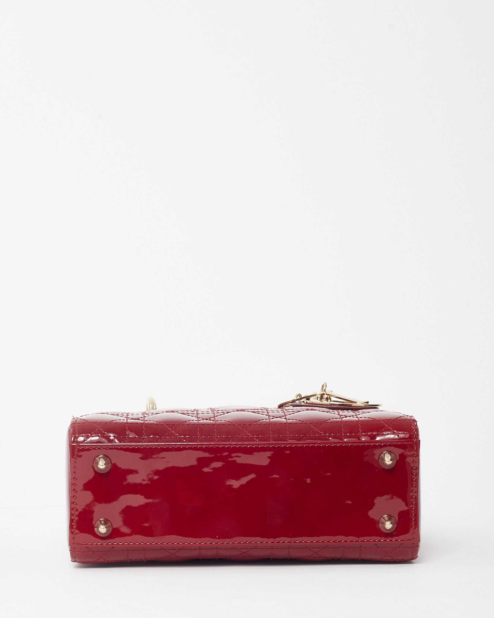 Red Cannage Patent Leather Small Lady Dior Bag GHW