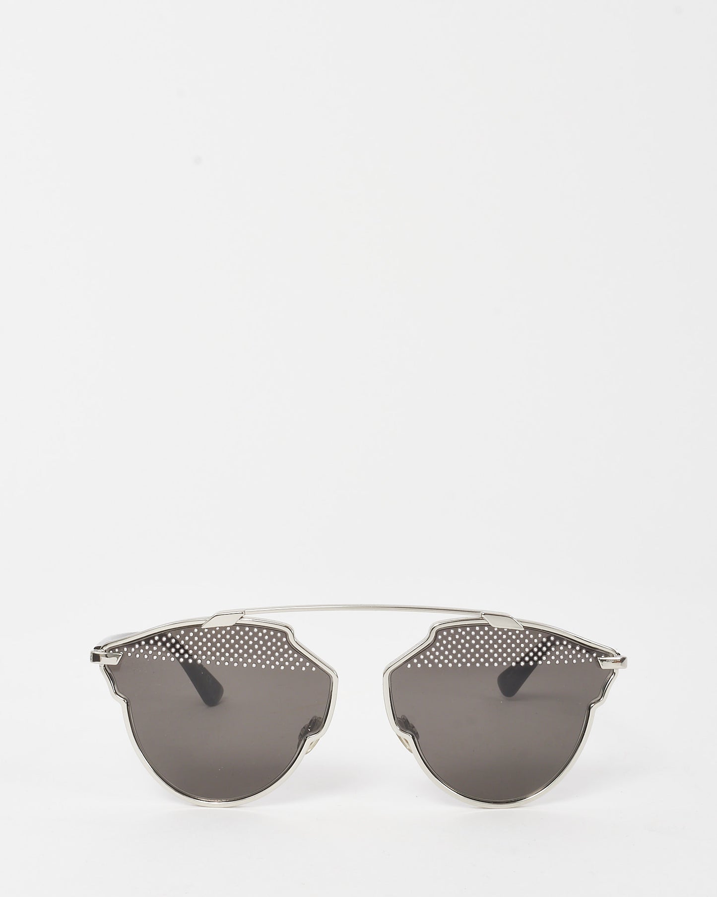 Dior Silver/Black Lens SoReal S Studded Aviator Sunglasses