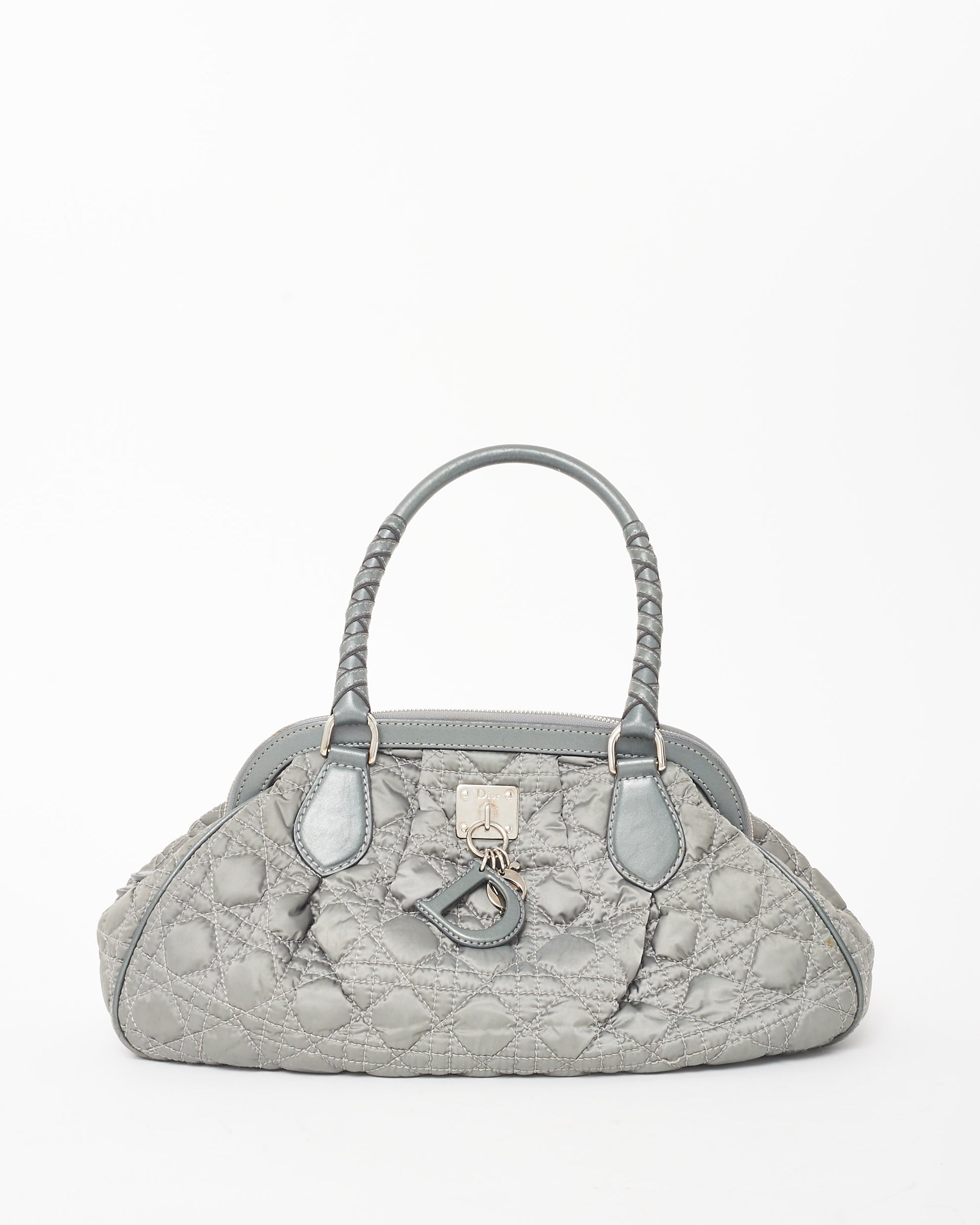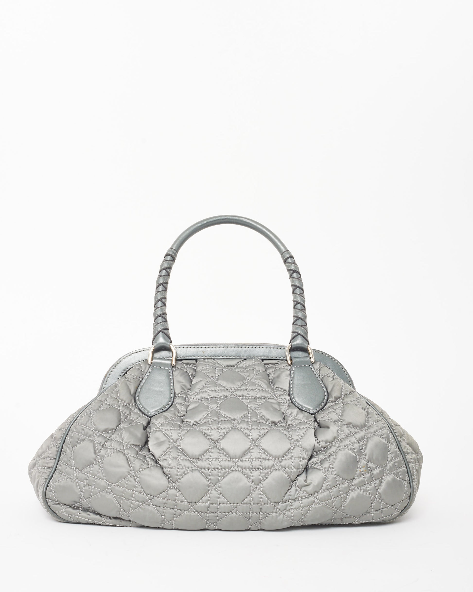 This is an authentic pre-owned Dior Vintage Grey Cannage Satin Charming Doctor Bag is a stunning blend of timeless elegance and vintage charm. Featuring the iconic Cannage quilted pattern, this bag showcases Dior’s signature craftsmanship and attention to detail, making it a sophisticated addition to any luxury collection. Luxurious satin fabric in a sophisticated grey hue, adorned with Dior’s iconic Cannage quilting. Structured “doctor bag” silhouette inspired by classic medical bags. Silver-tone hardware, including the iconic “Dior” letter charms, adds a touch of glamour. Finished with rounded edges with dual top handles. Lined in tonal fabric, features a slip pocket for small essentials. Top frame closure with a kiss-lock clasp for a vintage-inspired touch. Shop pre-owned authentic Dior handbags at Retyche.