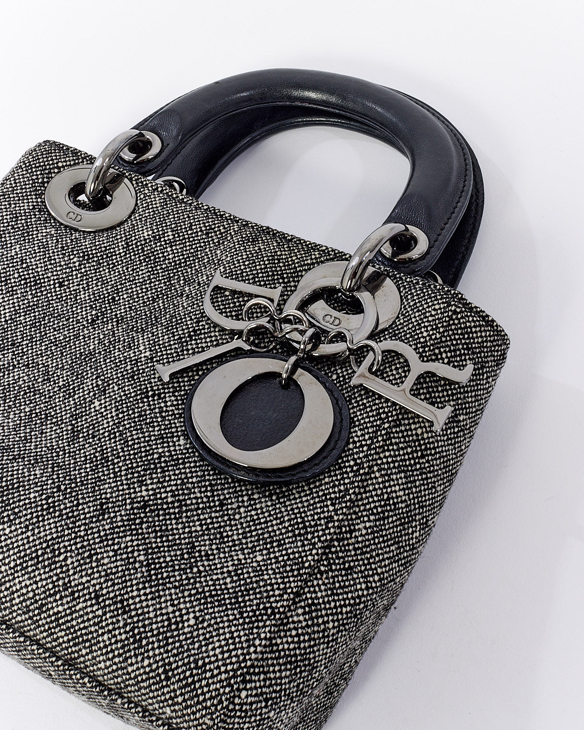 Vintage Black Tweed Mini Lady Dior Tote - NO STRAP