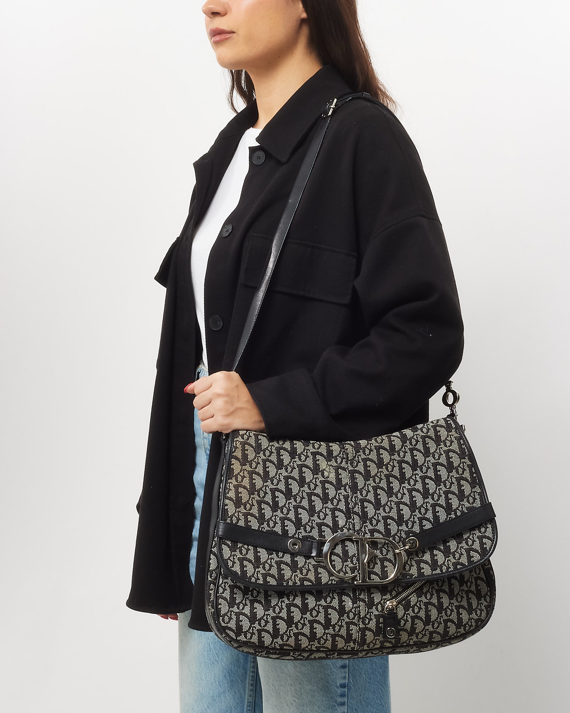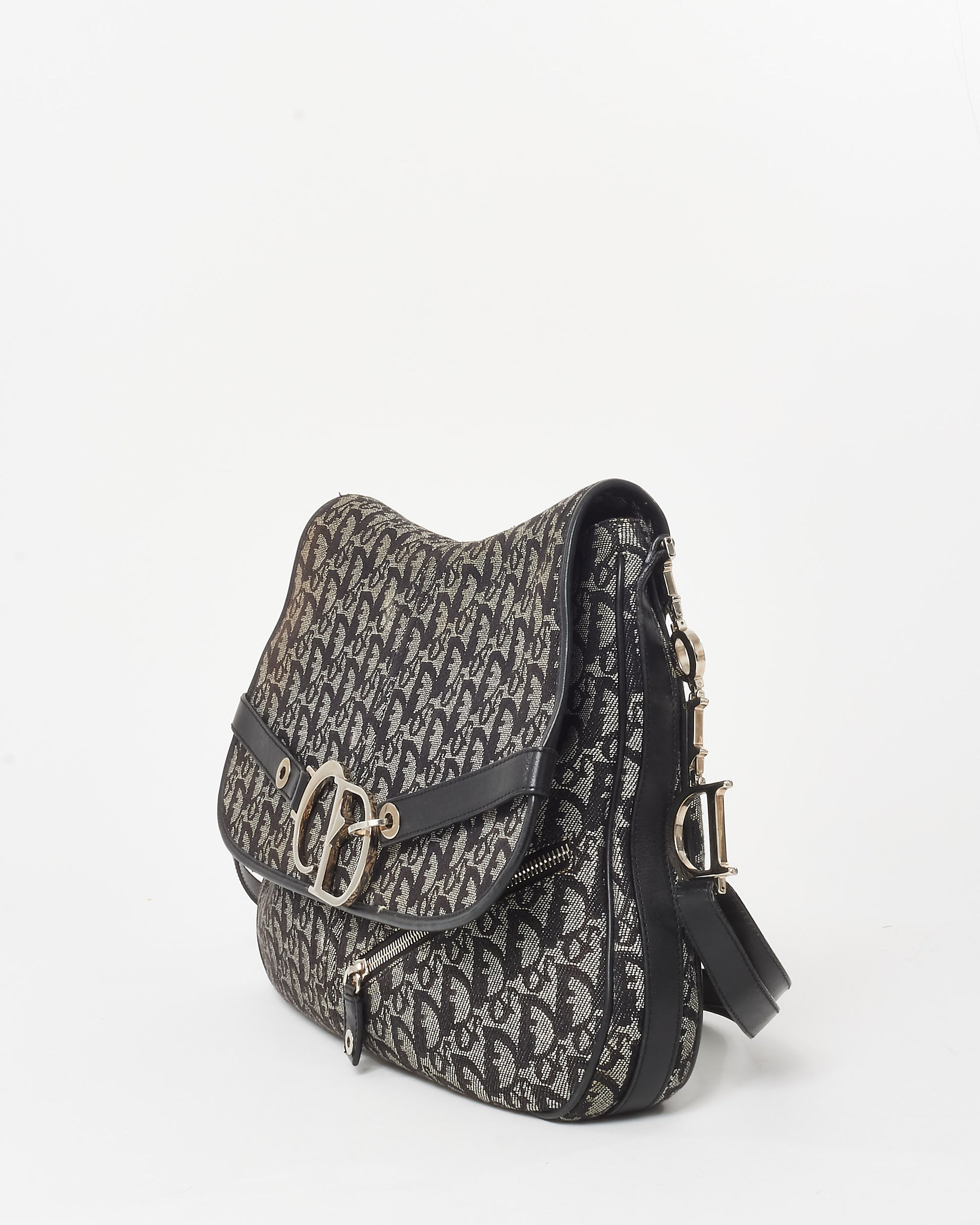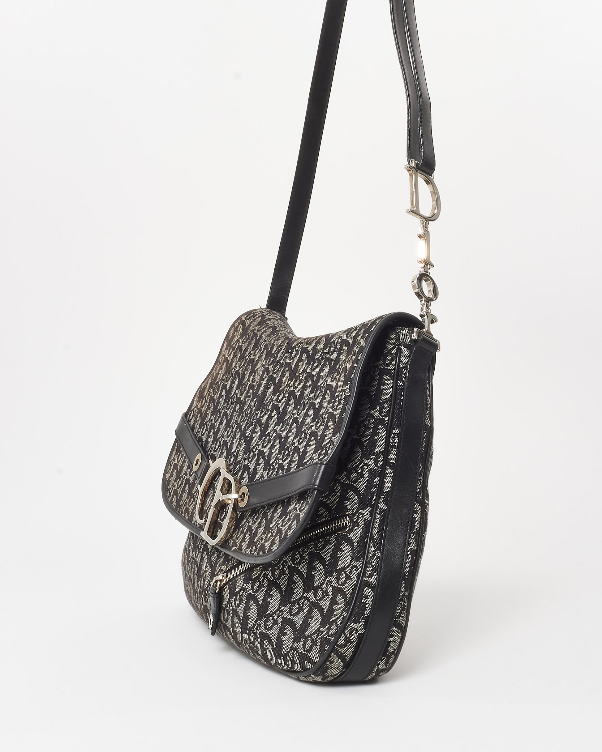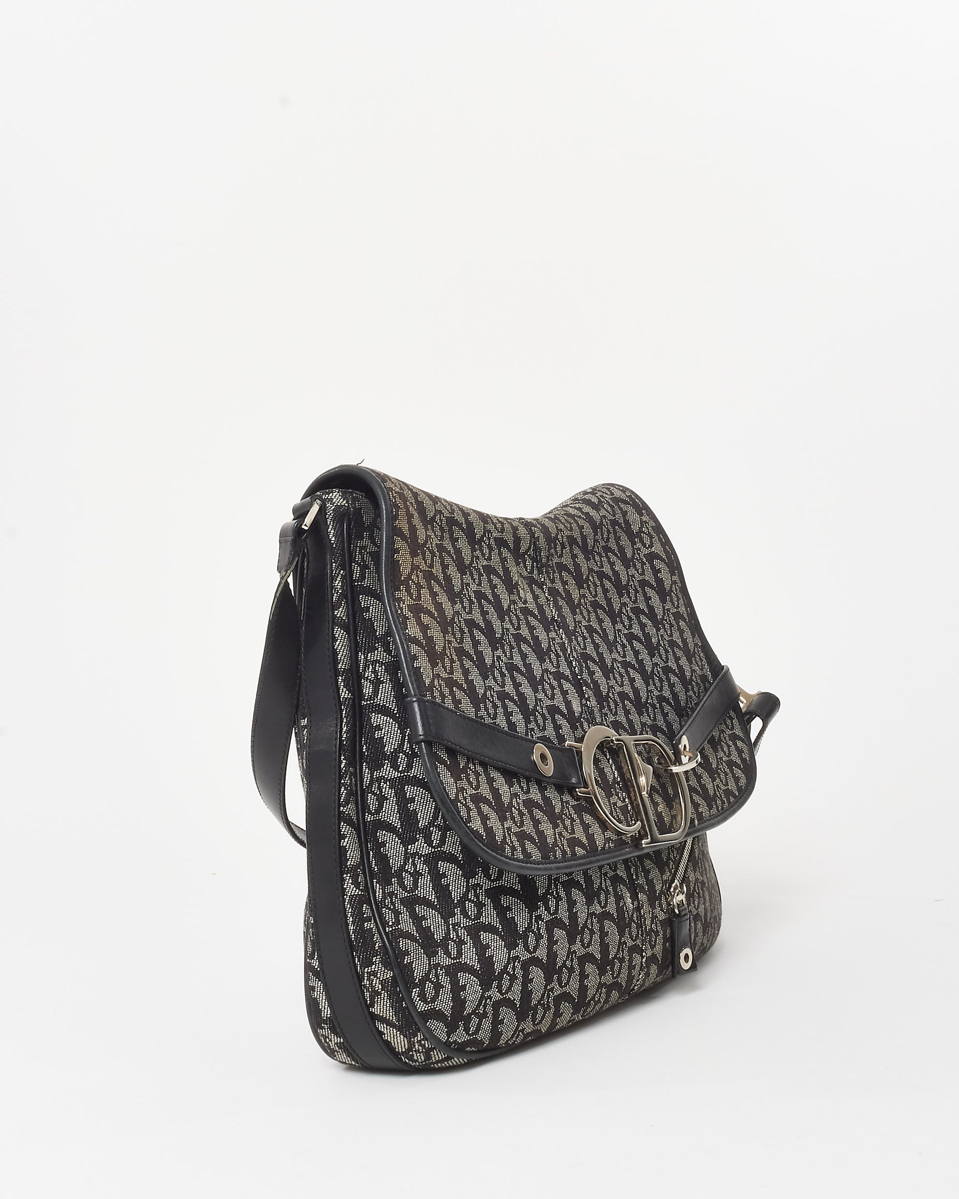 Vintage Navy Blue Oblique Monogram Canvas CD Flap Large Messenger Bag