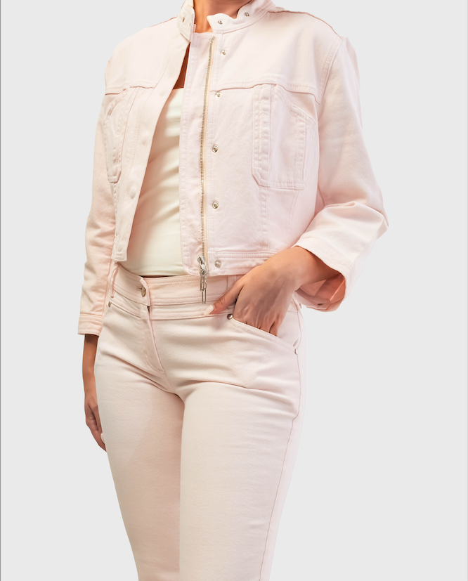 Vintage Pink Denim Jacket and Cropped Jeans - FR 40