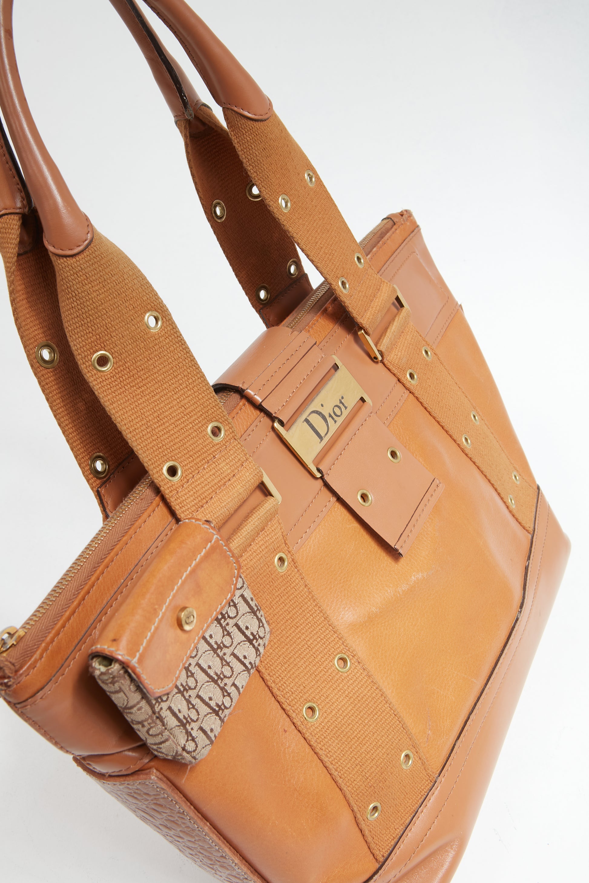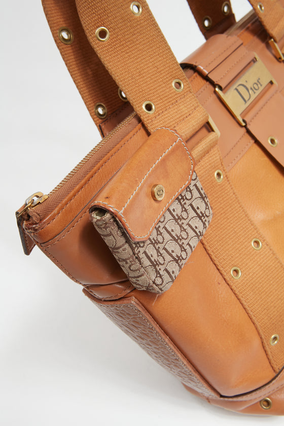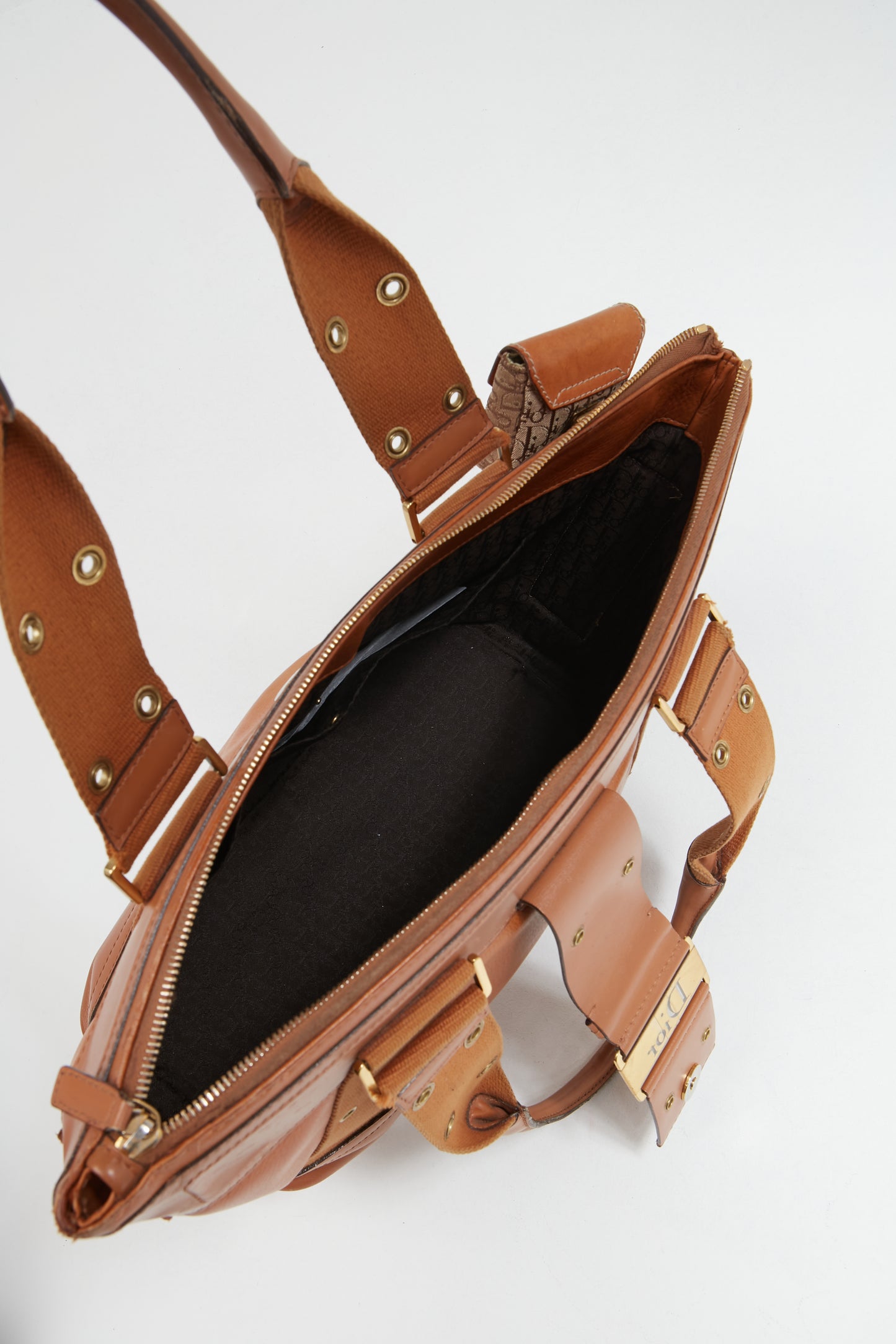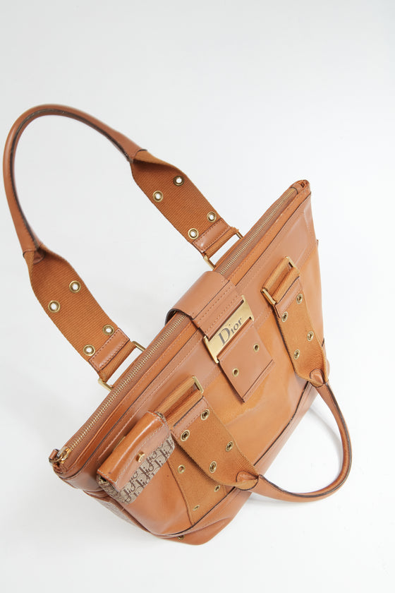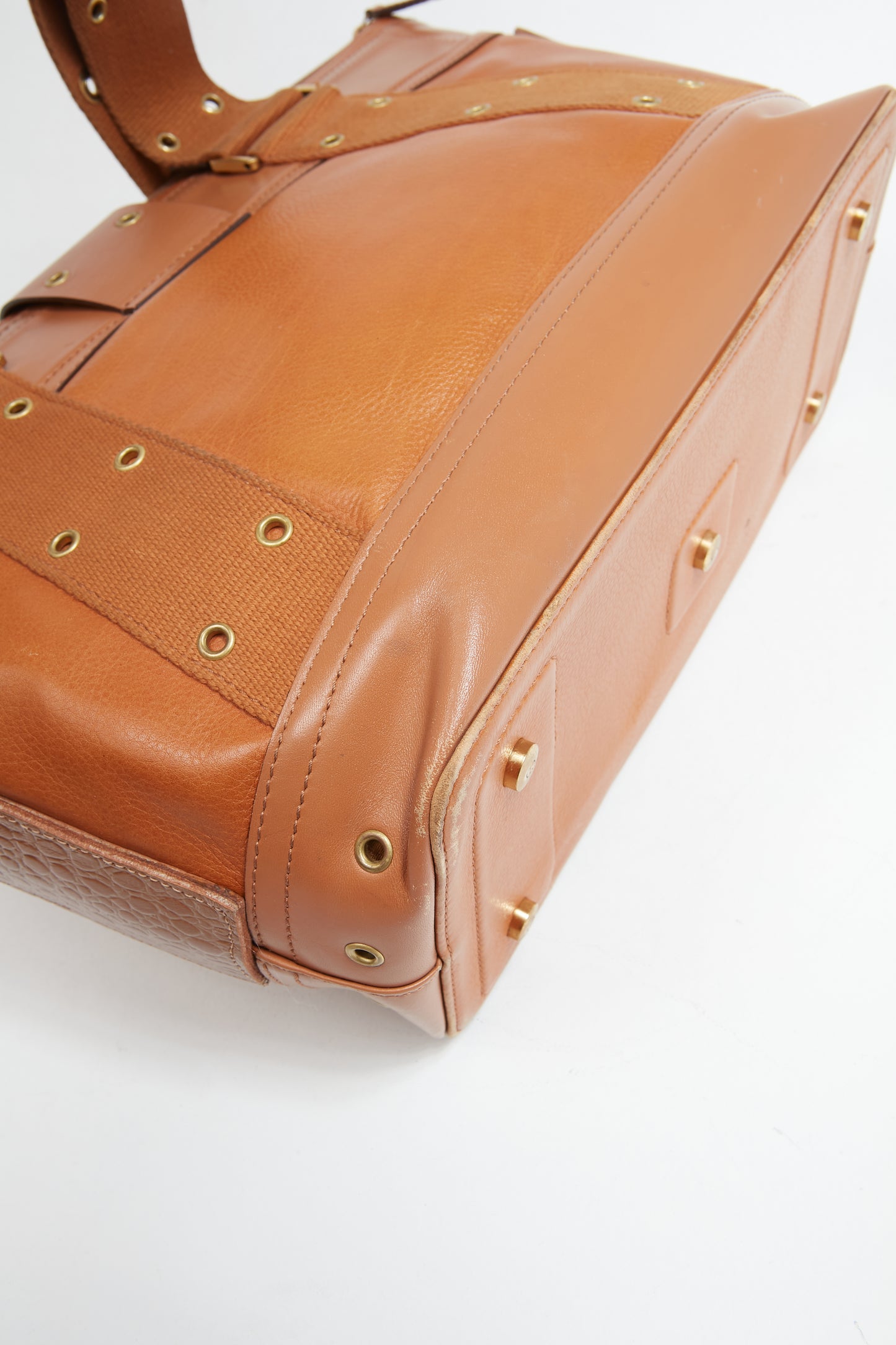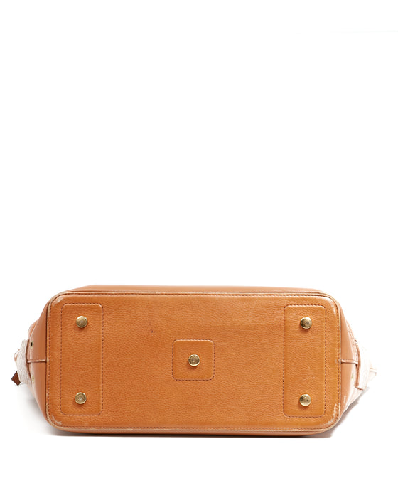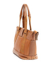 Vintage Tan Leather Street Chic Top Handle Tote Bag