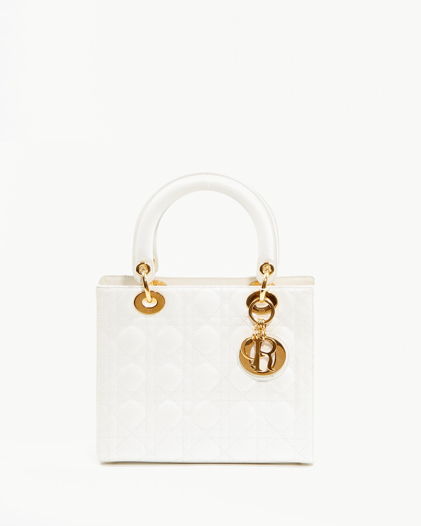 White Patent Leather Cannage Medium Lady Dior Bag