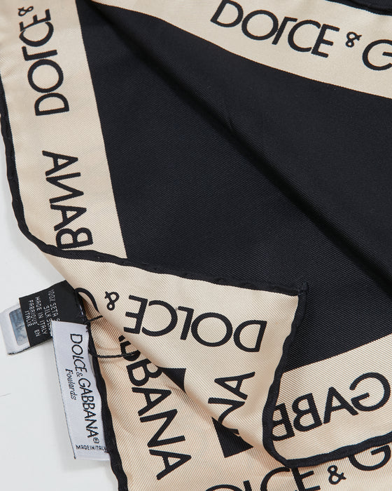 Dolce & Gabbana Black/Beige Silk Logo Scarf