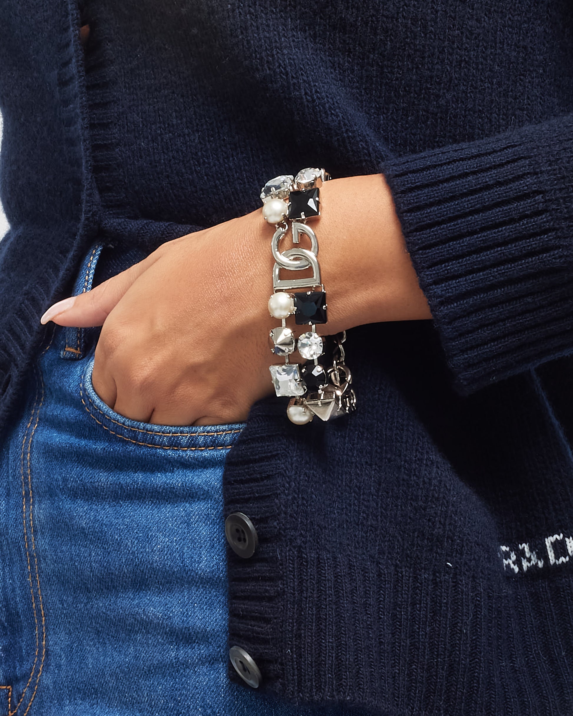 Explore Dolce & Gabbana's exquisite collection of jewelry, featuring this certified pre-owned Black Crystal Logo Bracelet. Embodying timeless elegance and modern sustainability, each piece, including favorites like this, is authenticated by Retyche. Discover sustainable luxury — shop our current treasures or find inspiration for your next coveted find.