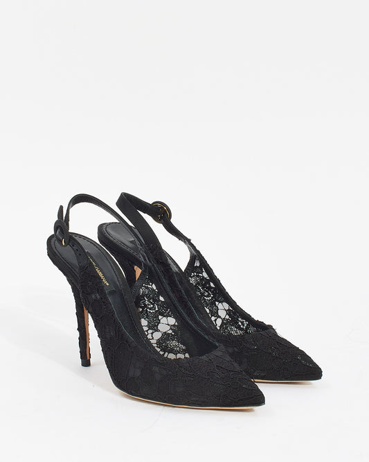 Black Lace Sling Back Heels - 37.5