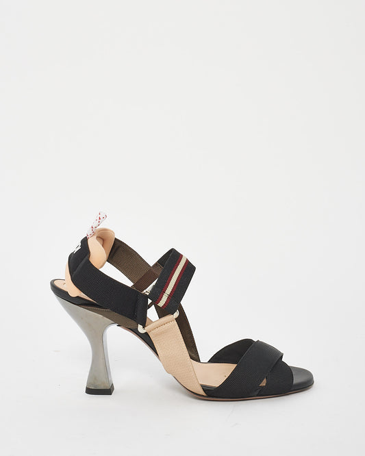 Black & Beige Fabric Colibri Strap Sandals - 39