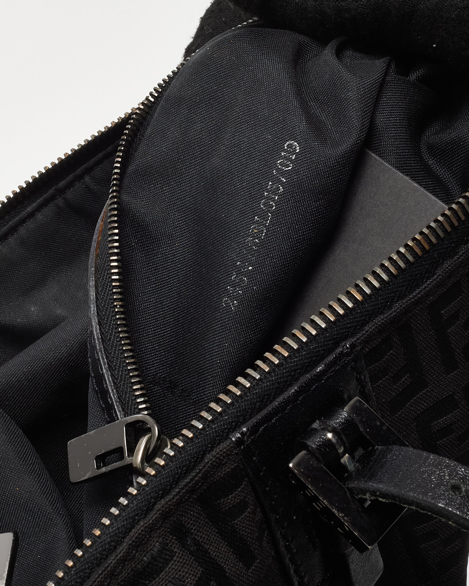 A sleek and timeless statement piece, this pre-loved authentic Fendi Black FF Zucchino Canvas East/West Shoulder Bag highlights the brand’s iconic monogram craftsmanship. Designed in durable black FF Zucchino canvas, it features a structured rectangular silhouette with a secure top closure and adjustable shoulder strap for versatile styling. Subtle silver-tone hardware adds a modern touch, making it perfect for everyday wear or evening outings. A refined essential for any curated luxury collection.