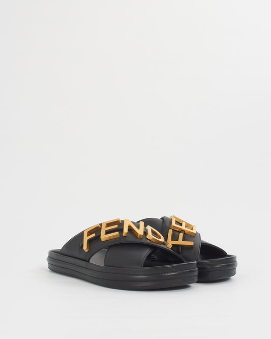 Black Leather "Fendigraphy" slides - 40