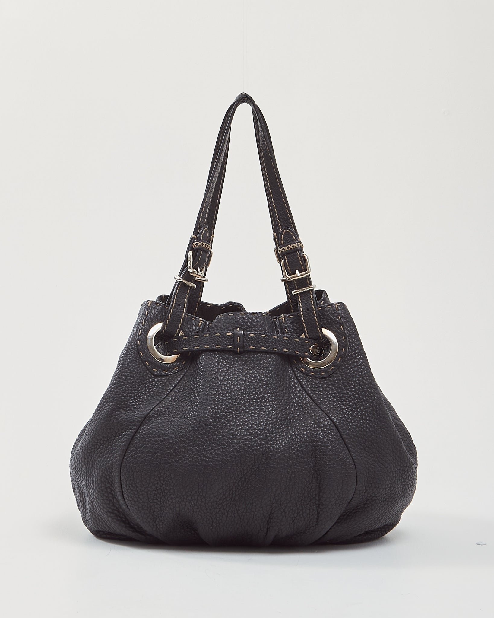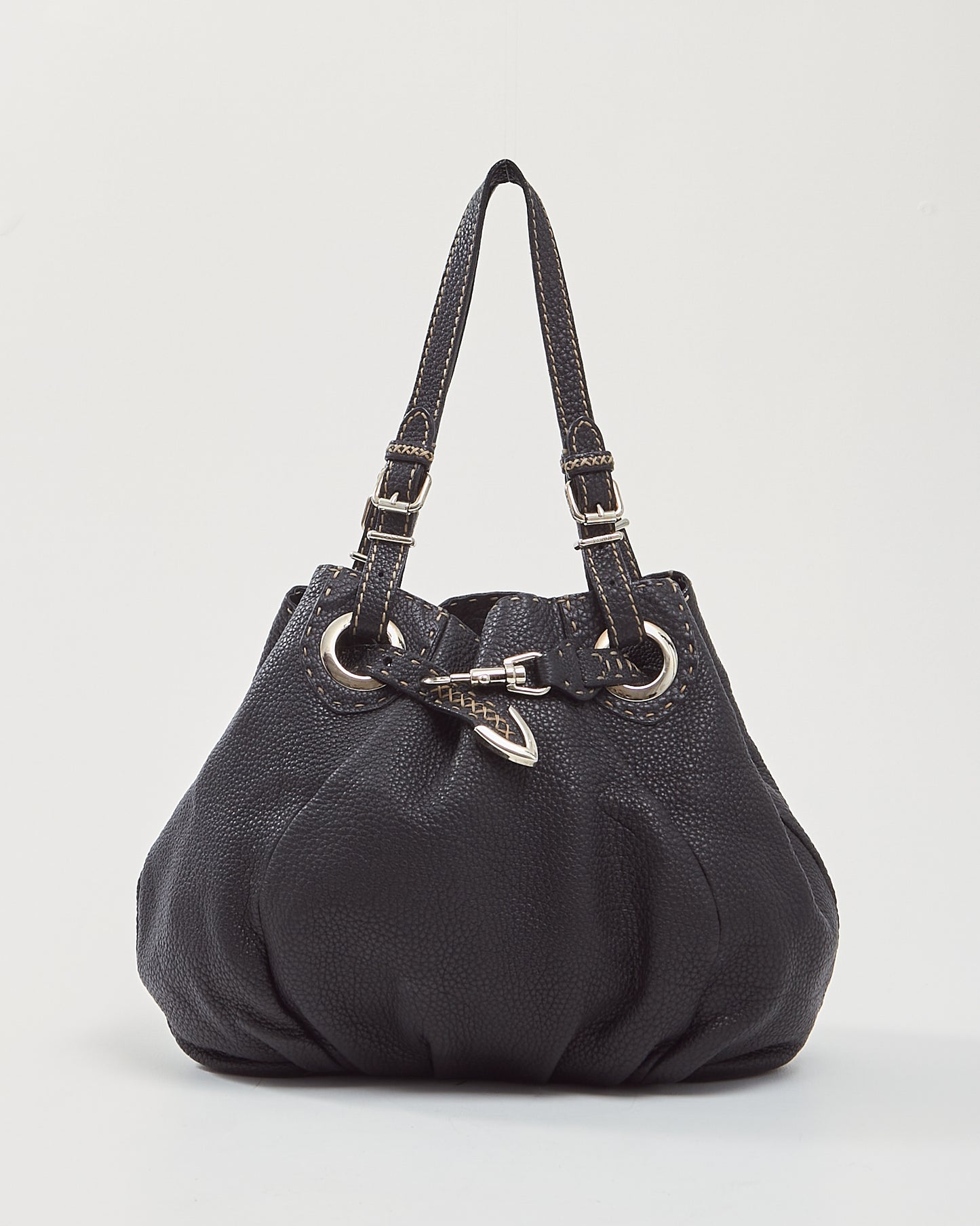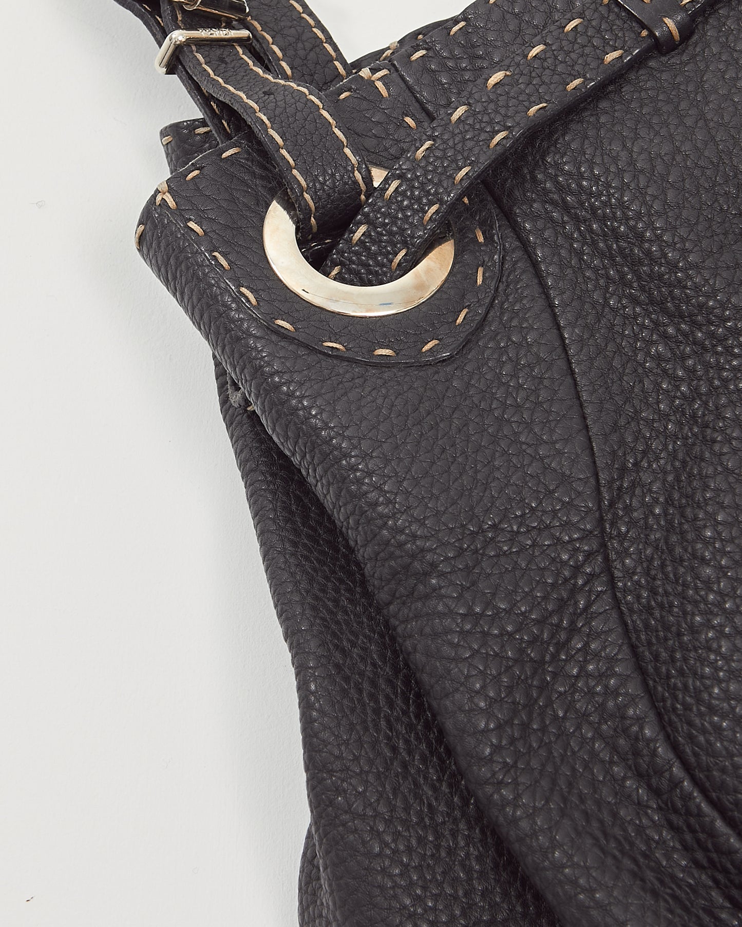 Black Selleria Top Stitch Grained Leather Tote Bag