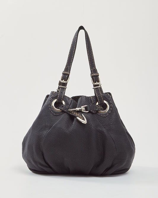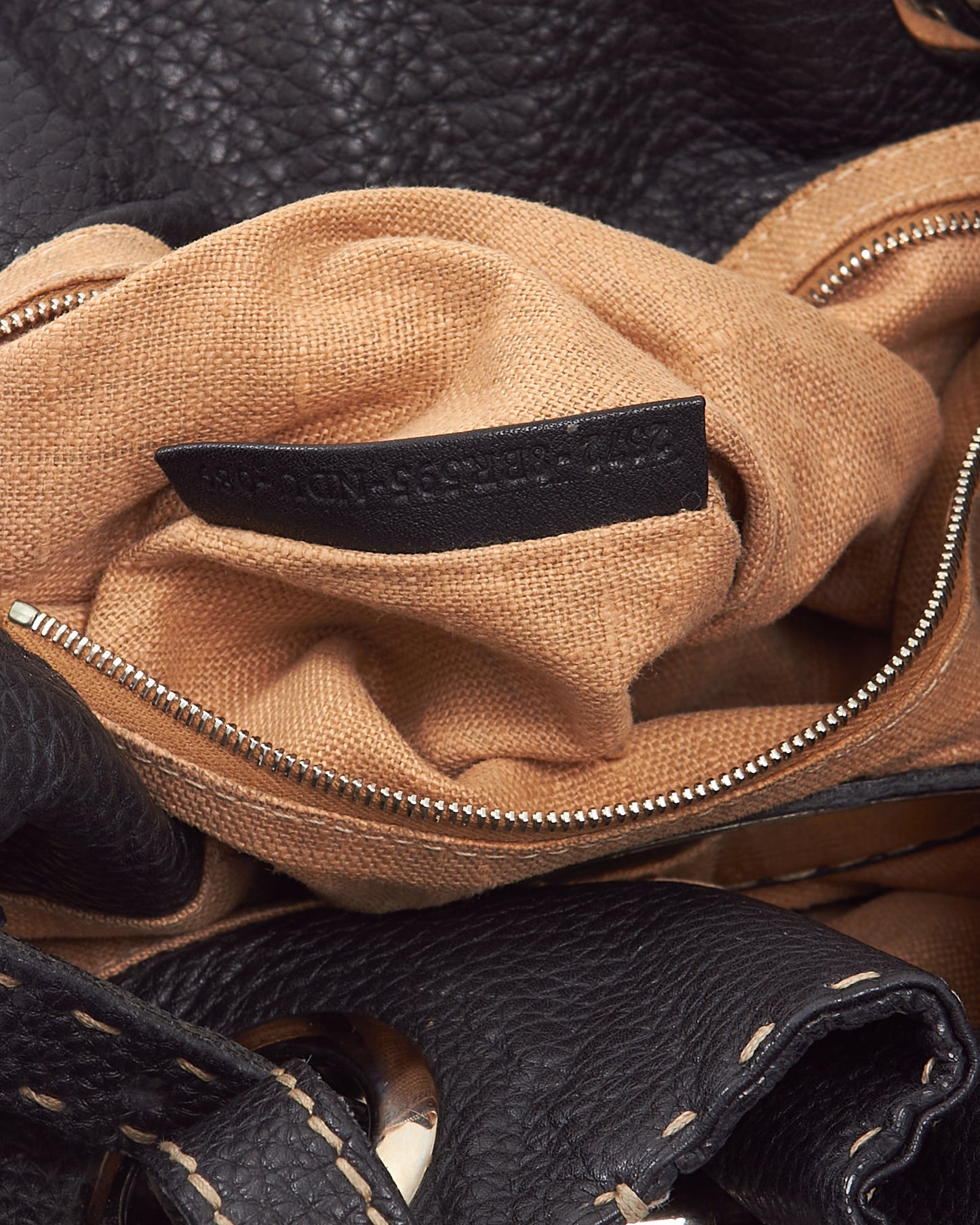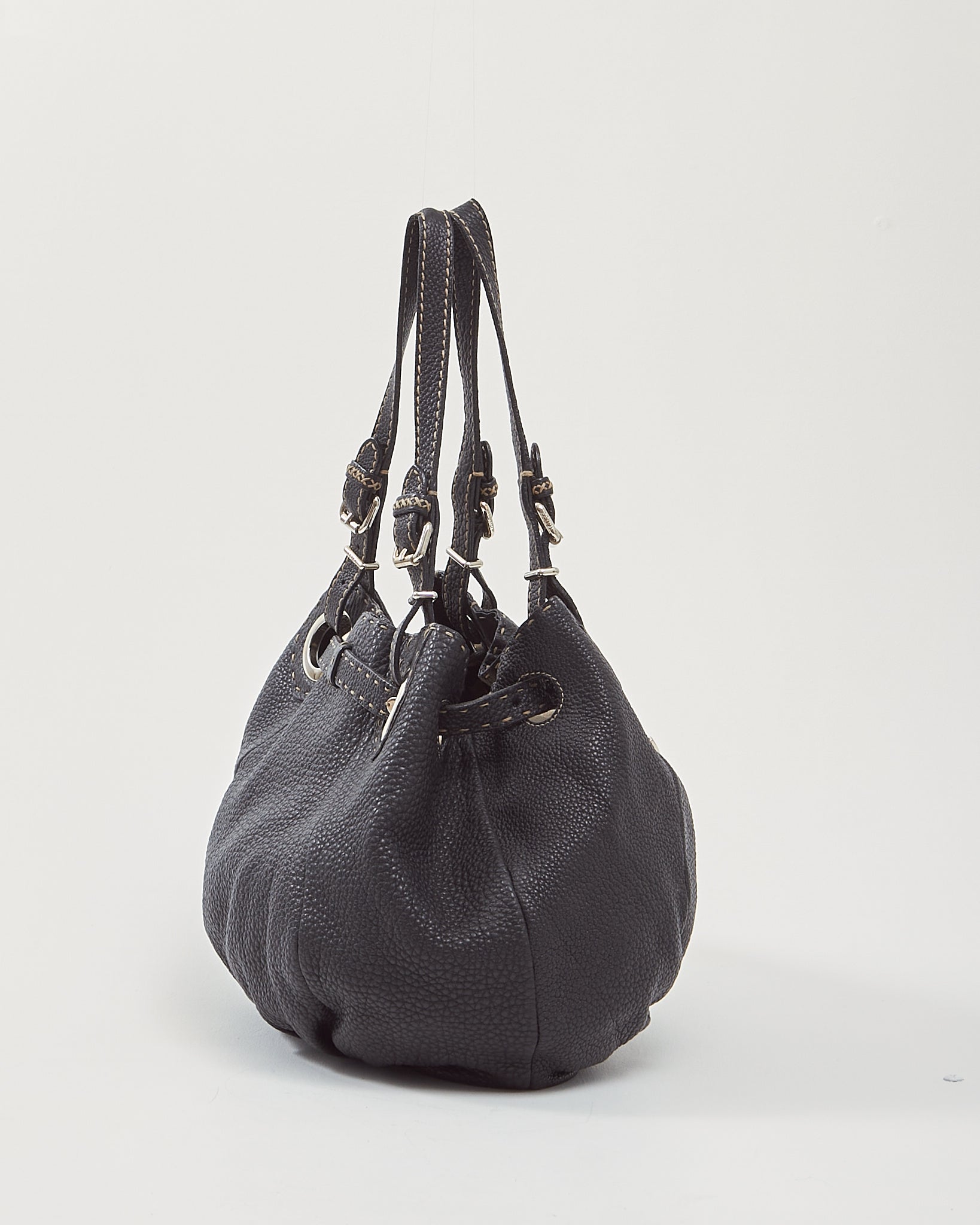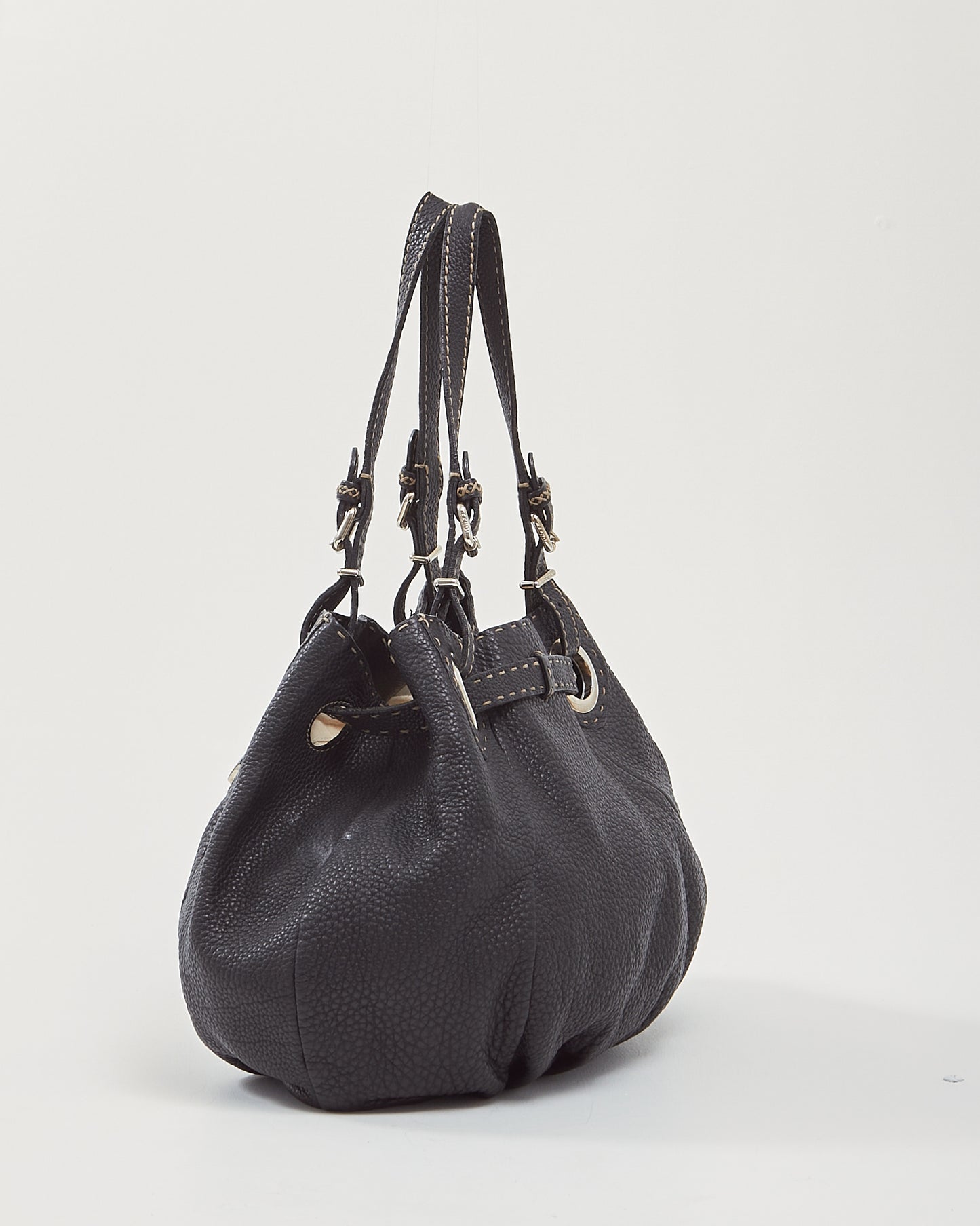 Black Selleria Top Stitch Grained Leather Tote Bag
