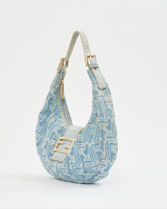 Blue Denim Zucca Hoop Baguette Shoulder Bag