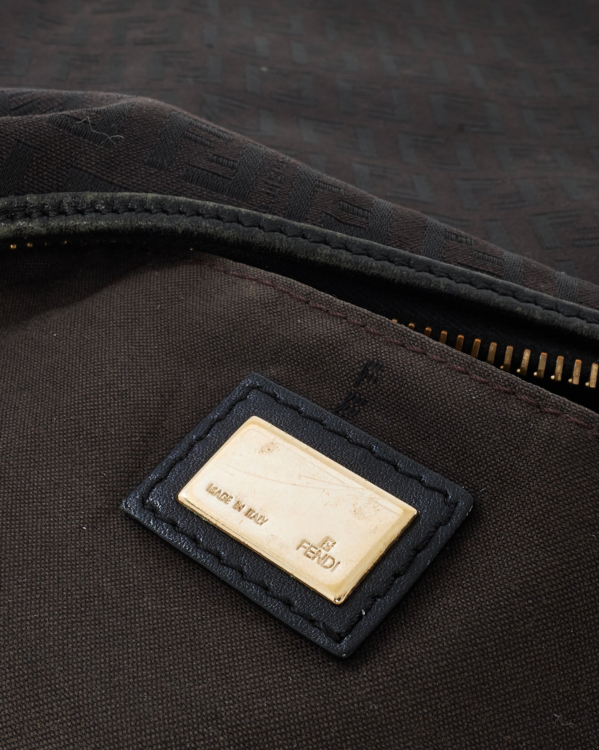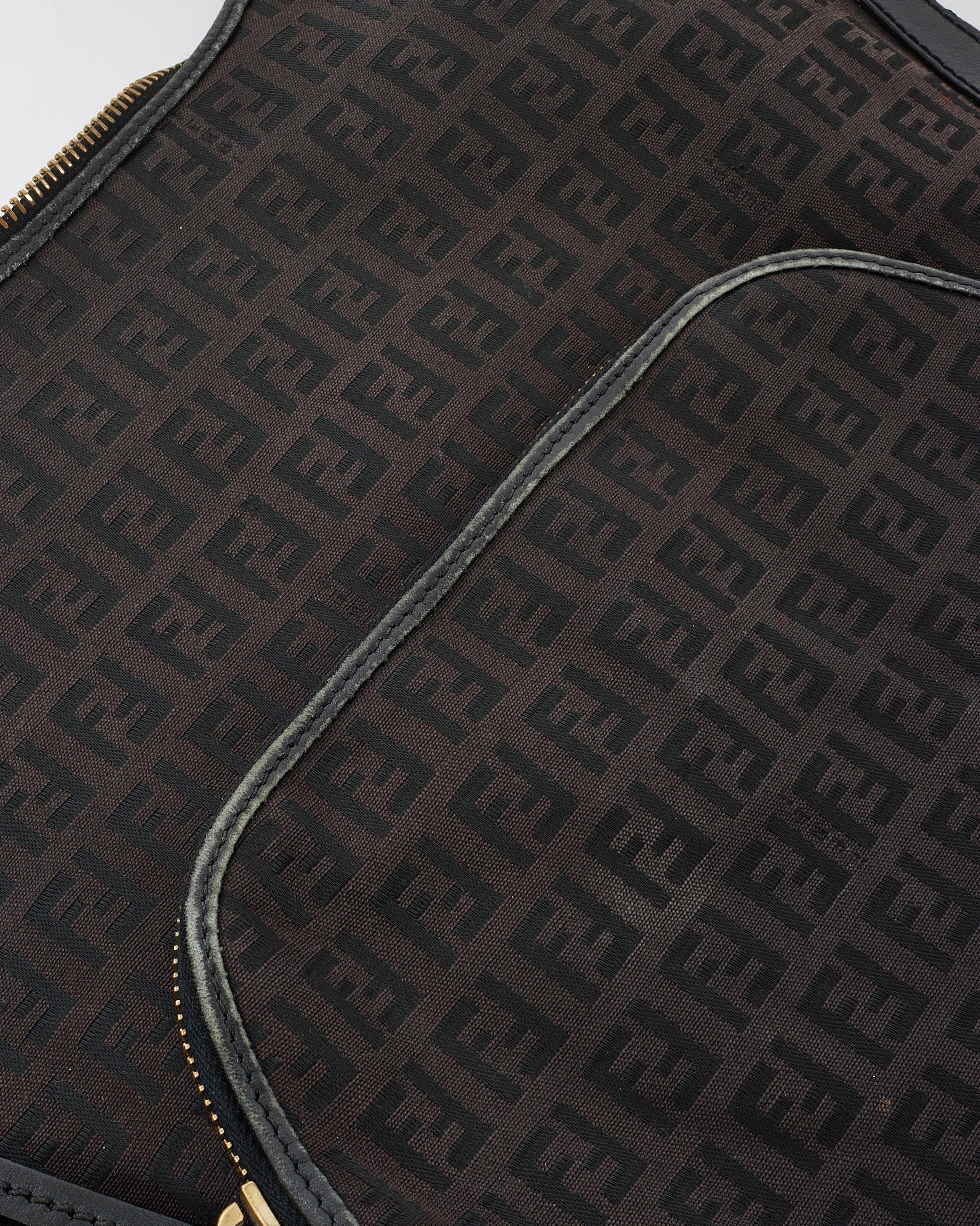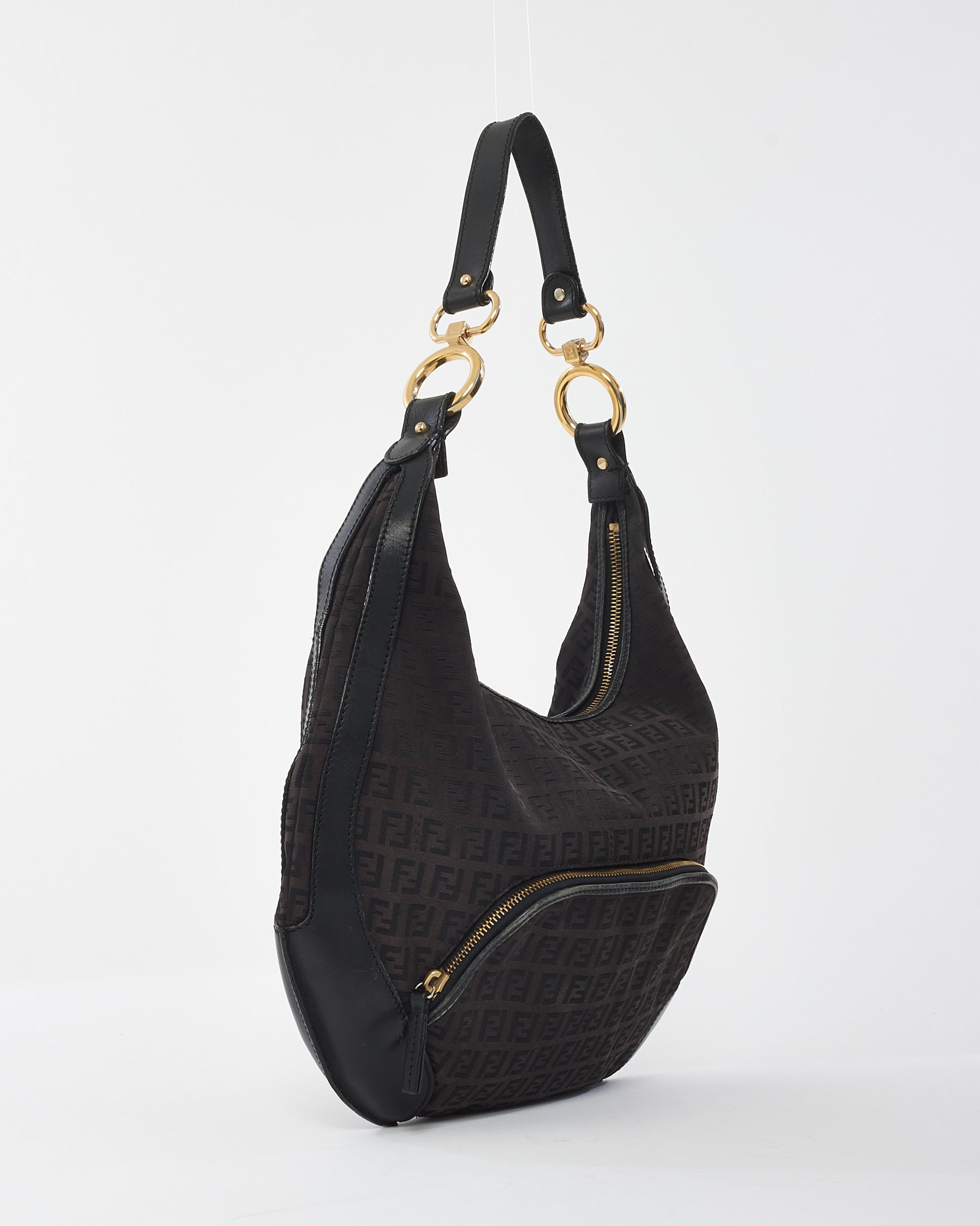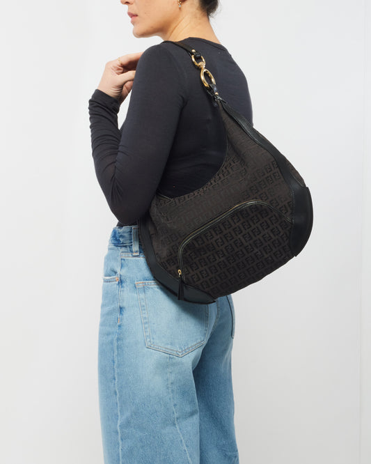 Brown and Black Zucchino Print Canvas Hobo Shoulder Bag