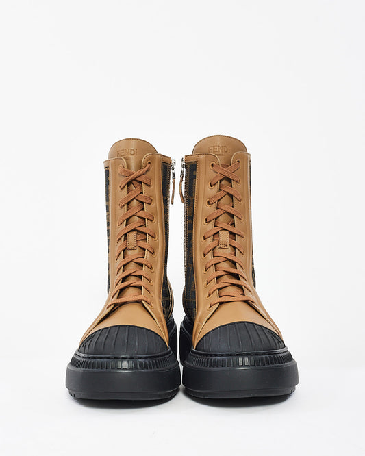Brown Canvas Zucca Print Combat Boot - 38.5