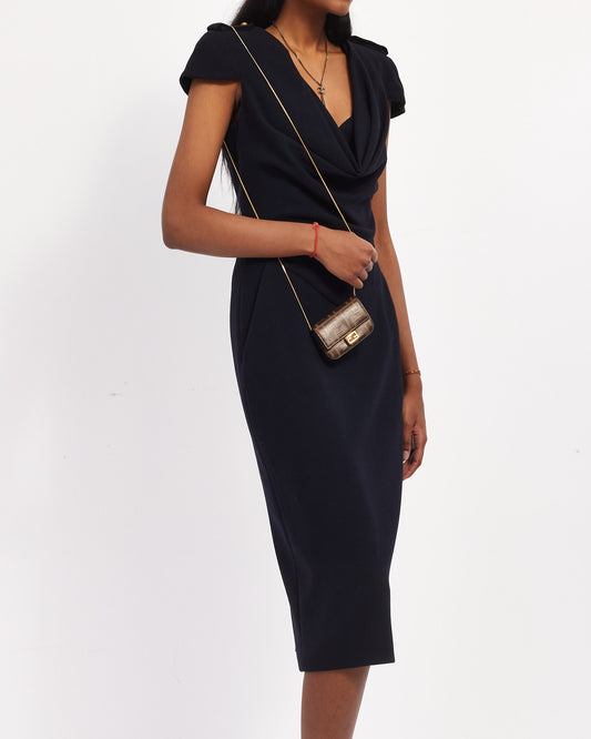 Brown Canvas Zucca Print Nano Baguette Charm with Chain