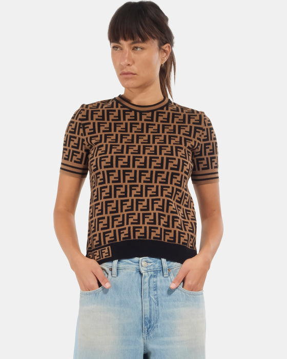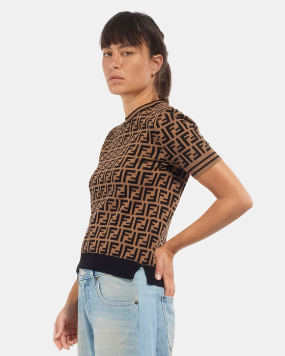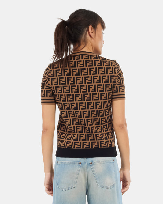 Brown Viscosa Logo Jacquard Short Sleeve Shirt - 40