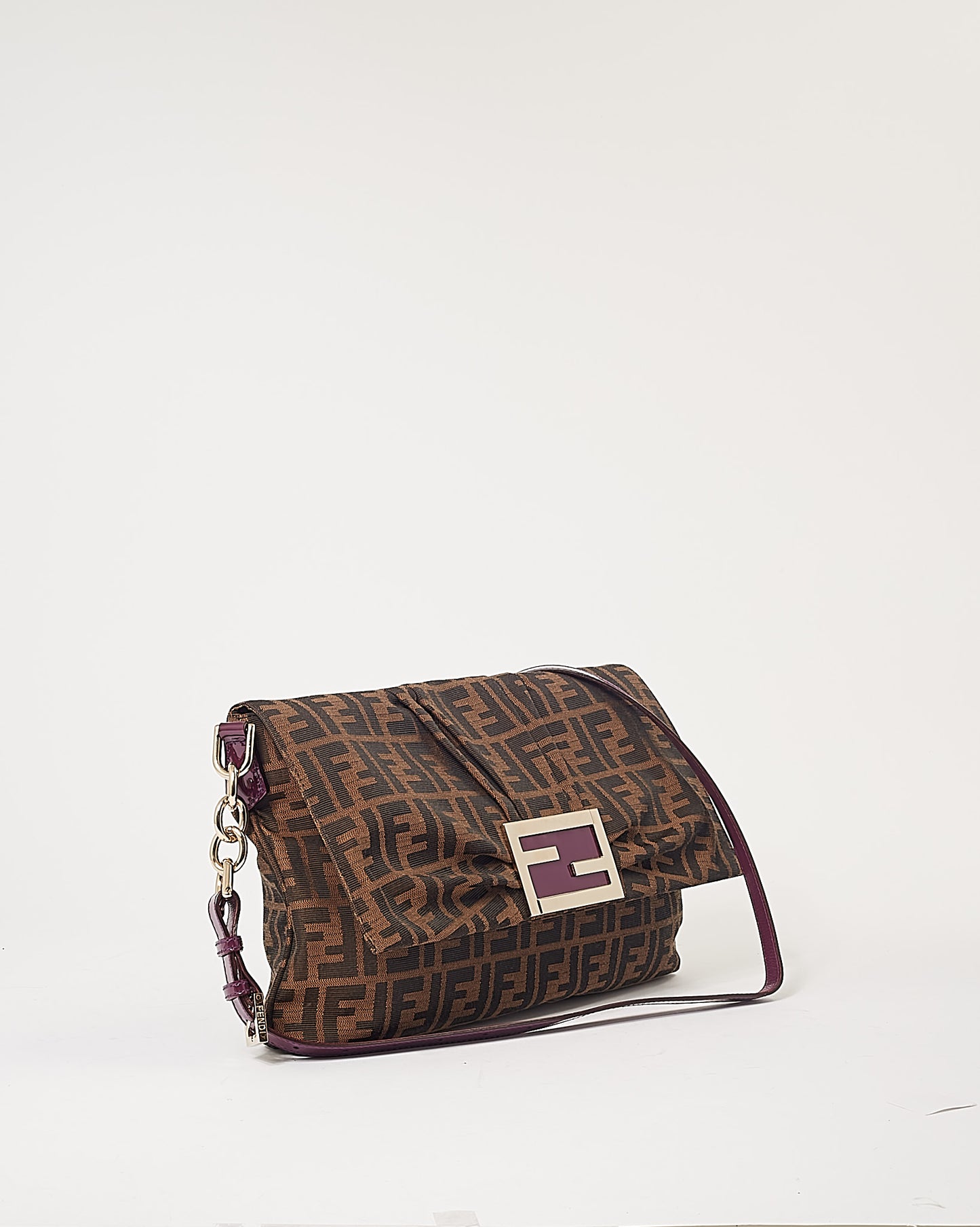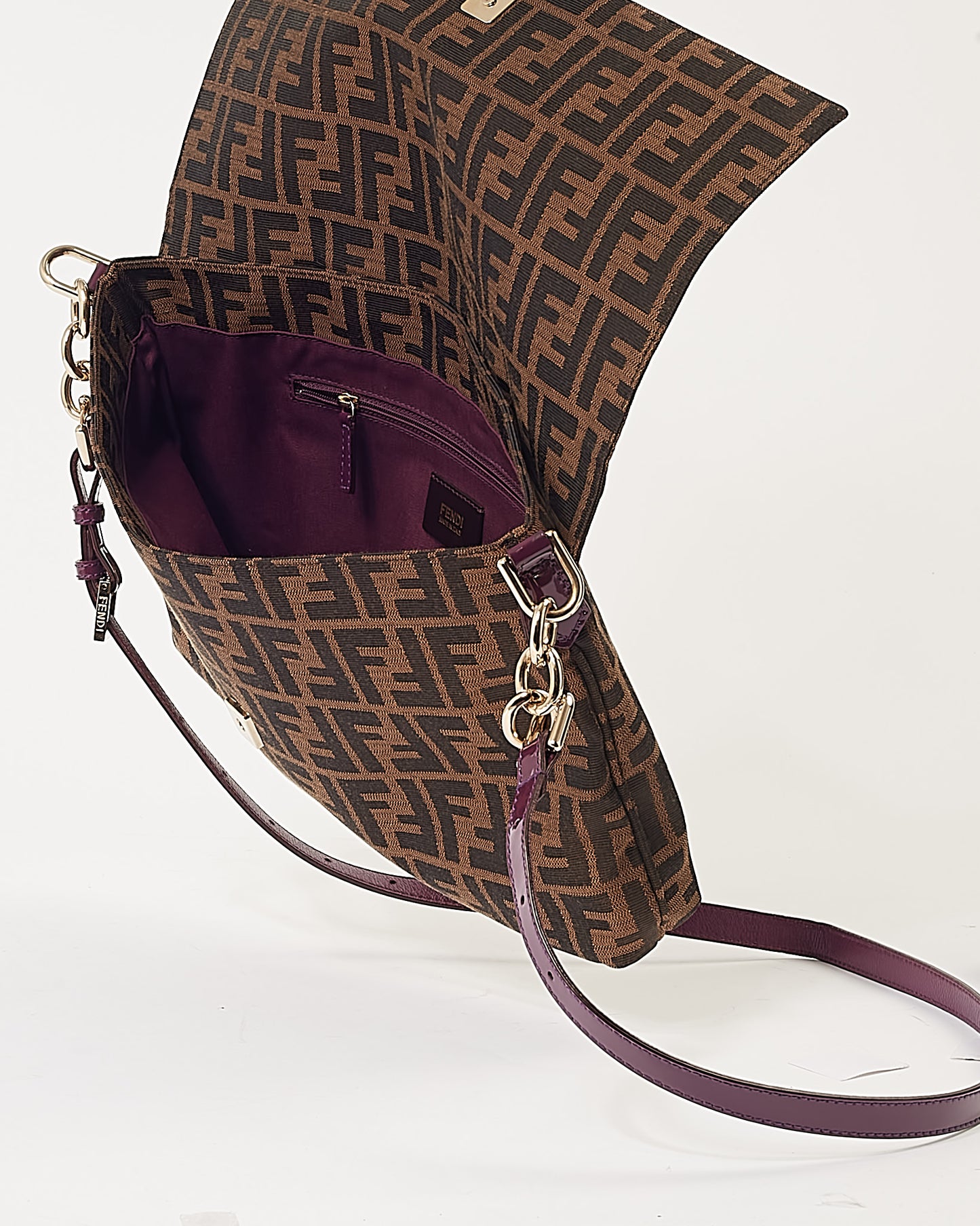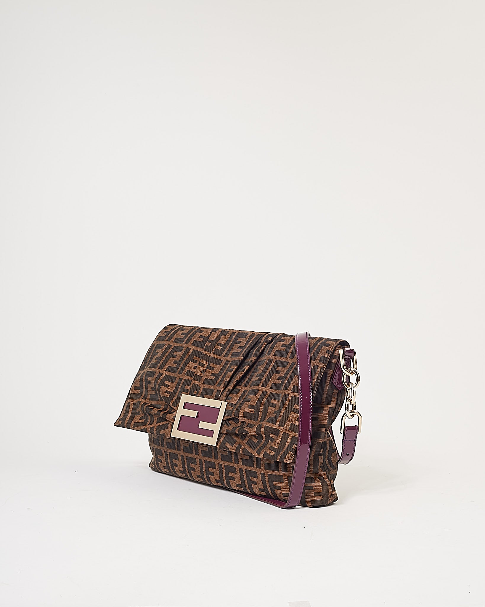 Zucca Canvas with Purple Patent Leather Large Mia Crossbody Bag