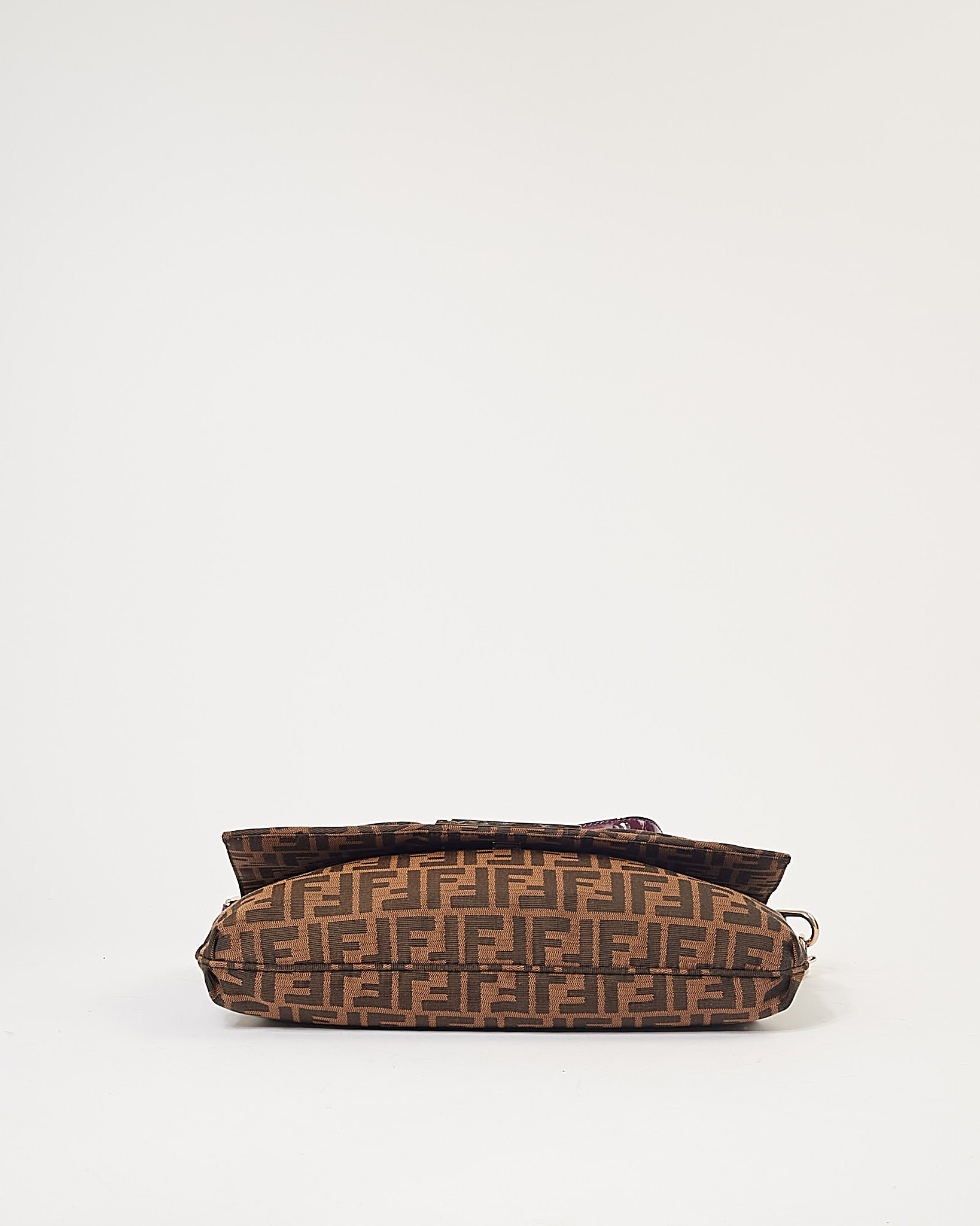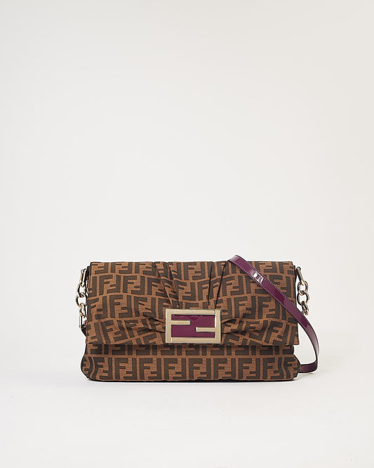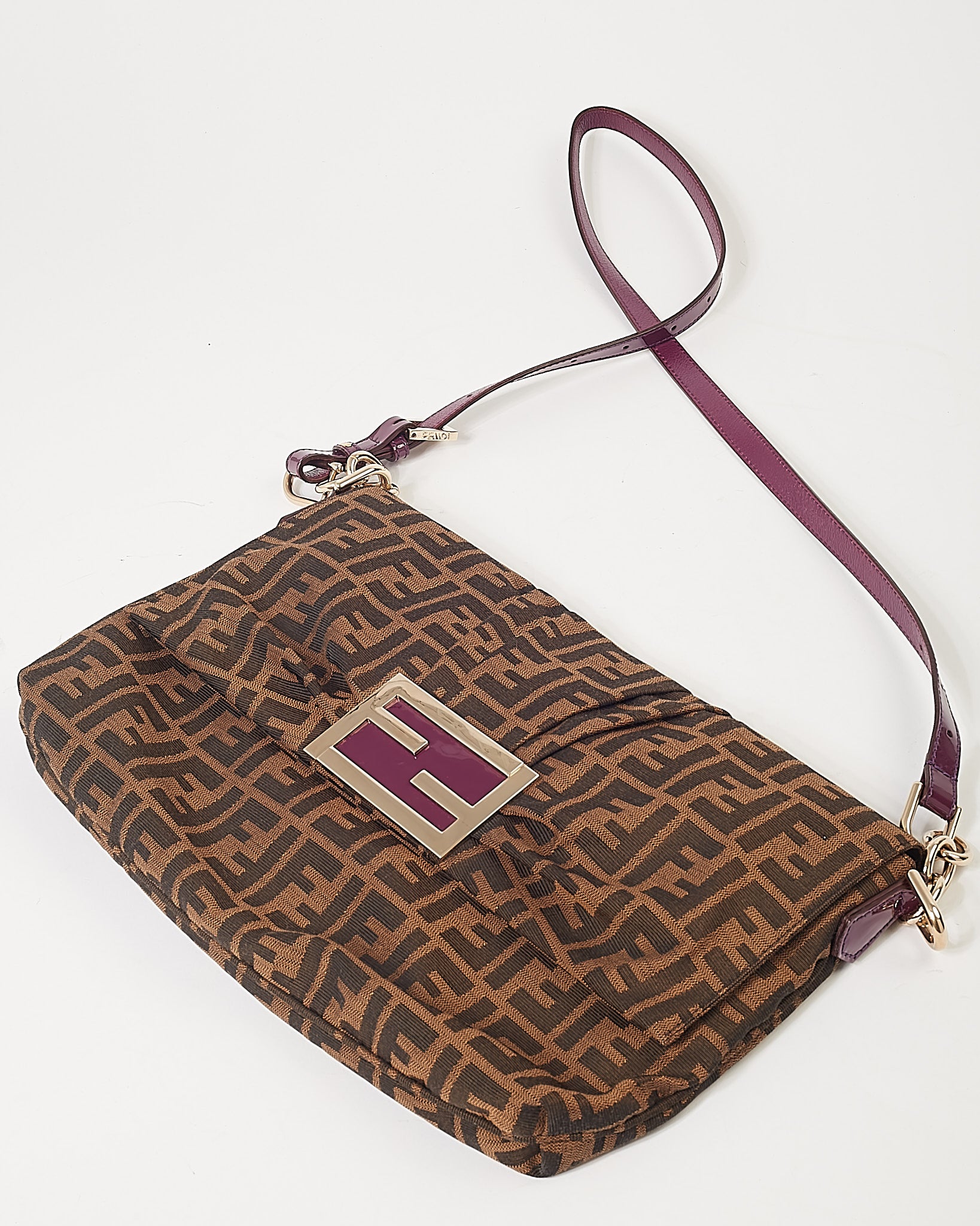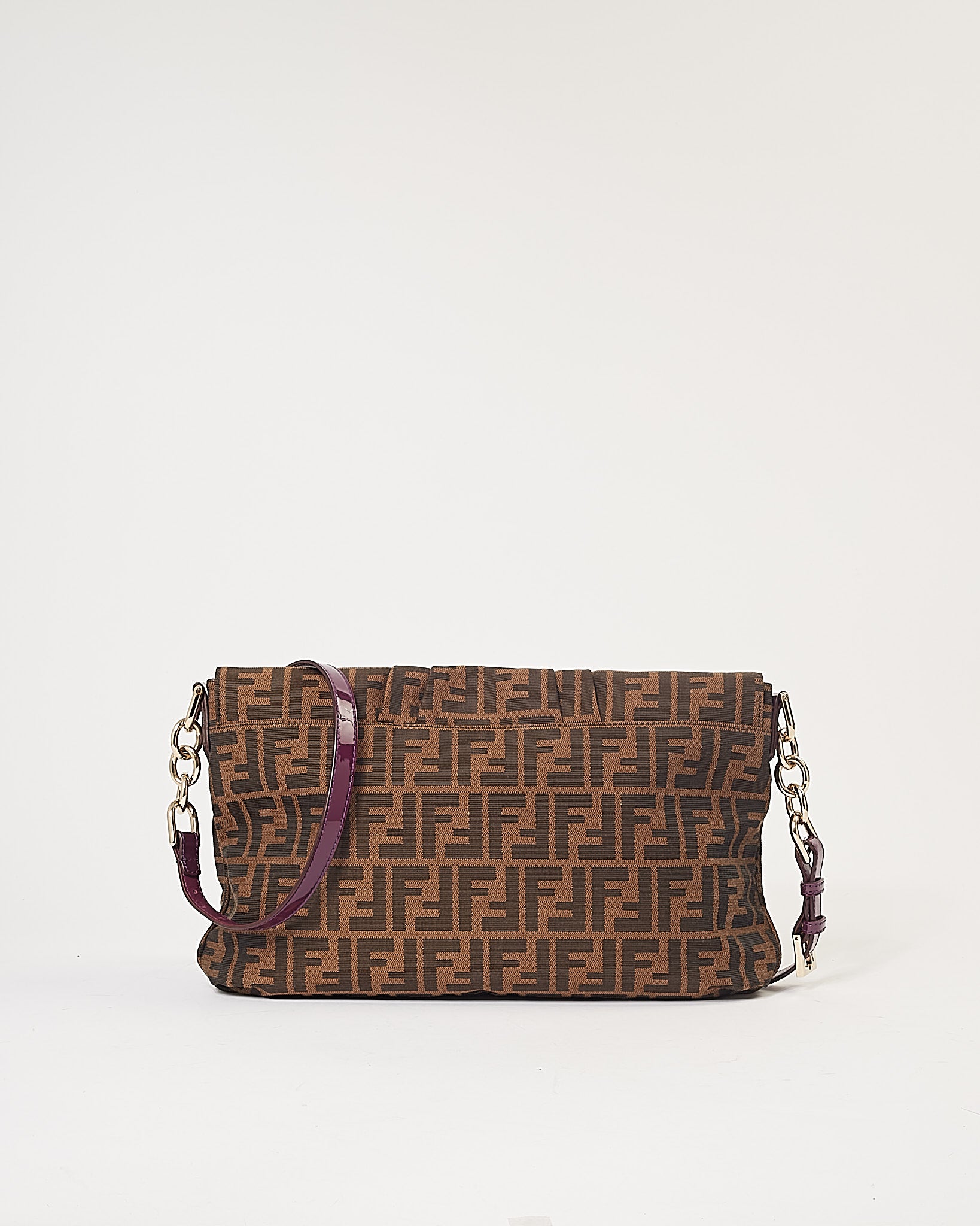 Zucca Canvas with Purple Patent Leather Large Mia Crossbody Bag