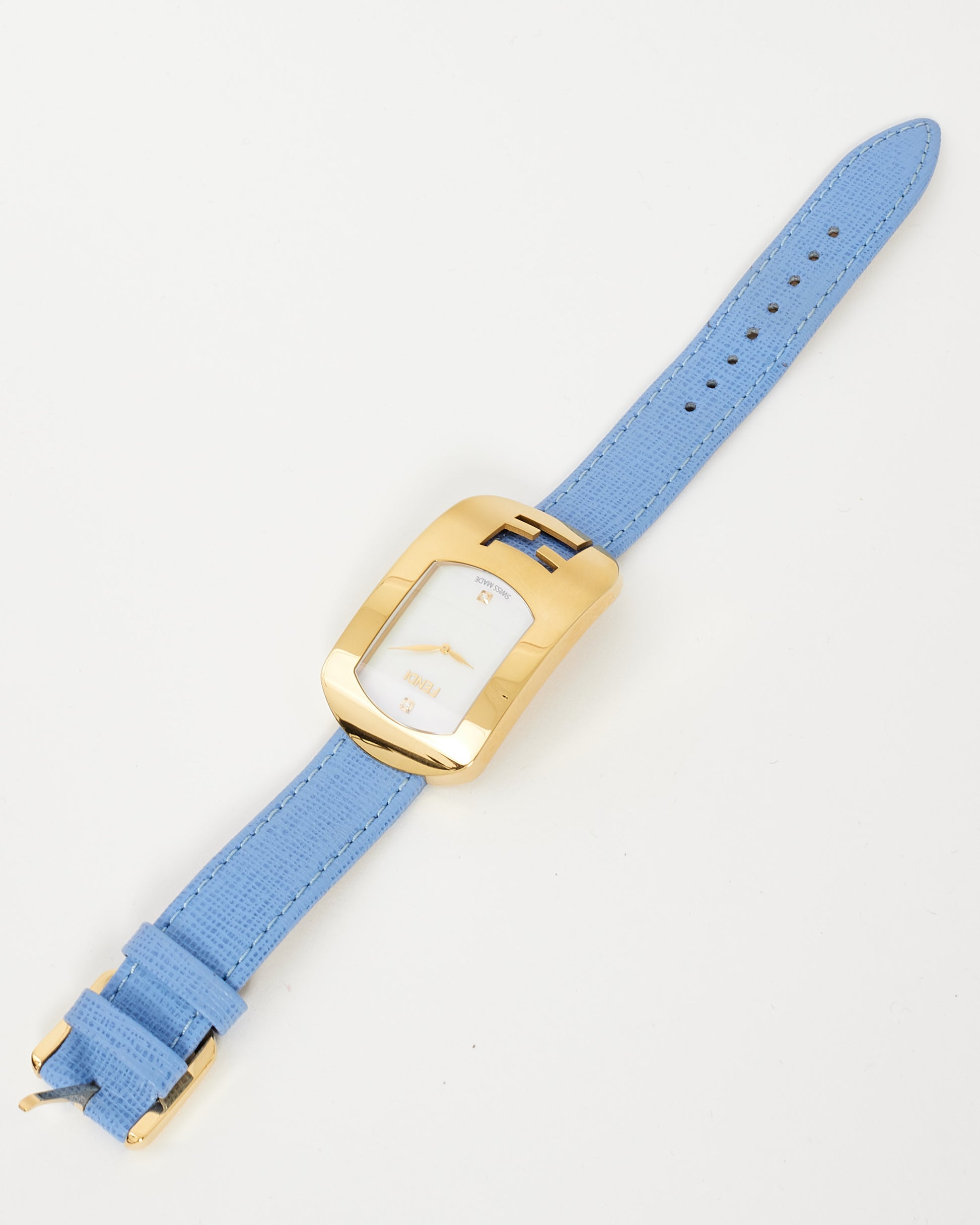 Gold/Blue Leather Chameleon Gold-Tone Quartz Watch
