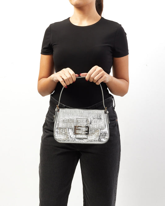 Silver Leather Zucchino Print Mini Shoulder Bag