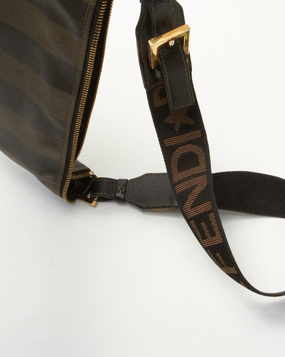 Vintage Brown Stripe Logo Strap Shoulder Bag