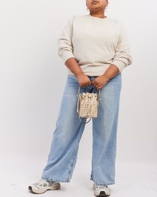 White PVC and Leather Zucca Print Mini "Mon Tresor" Drawstring Bucket Bag