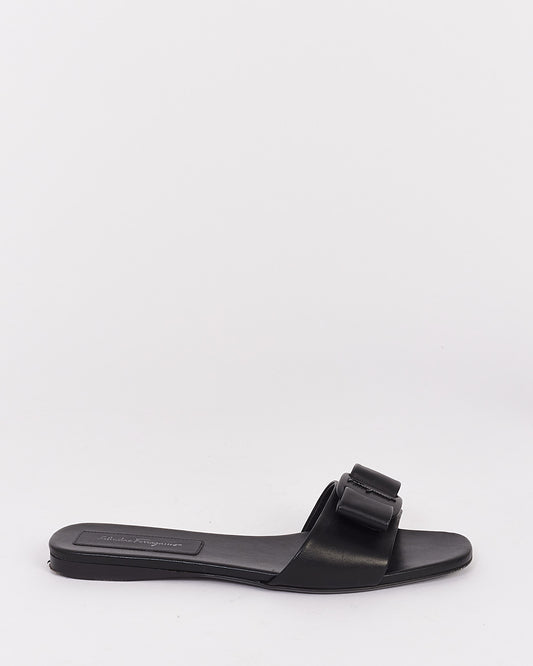 Black Leather Bow Accent Slides - 7.5