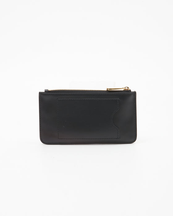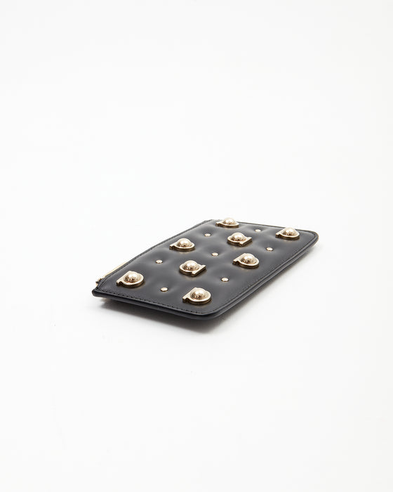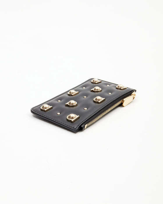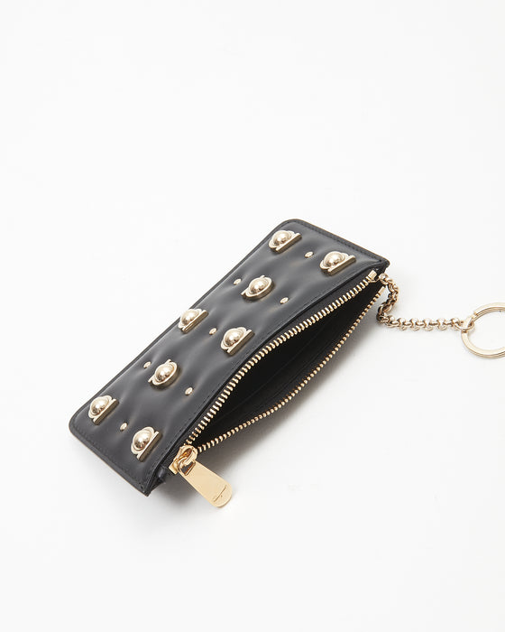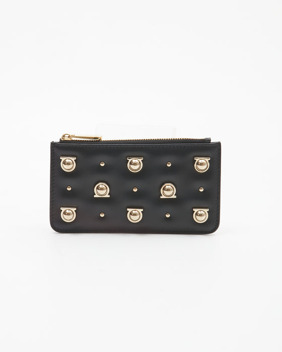 Ferragamo Black Leather Gancini Studded Chain Card Holder