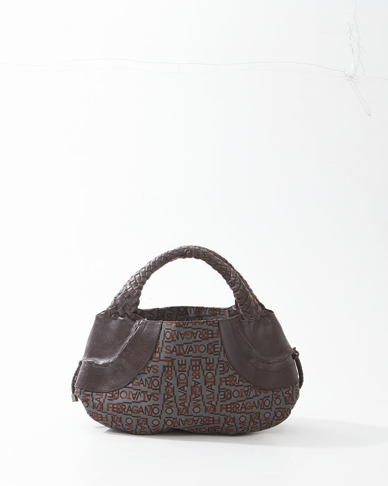Ferragamo Brown Canvas/Leather Logo Shoulder Bag