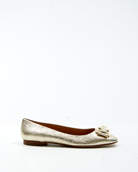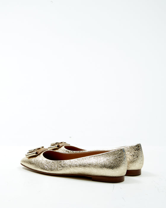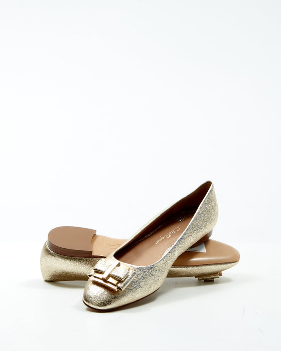 Ferragamo Metallic Gold Foil Leather Ballerina Flats - 9