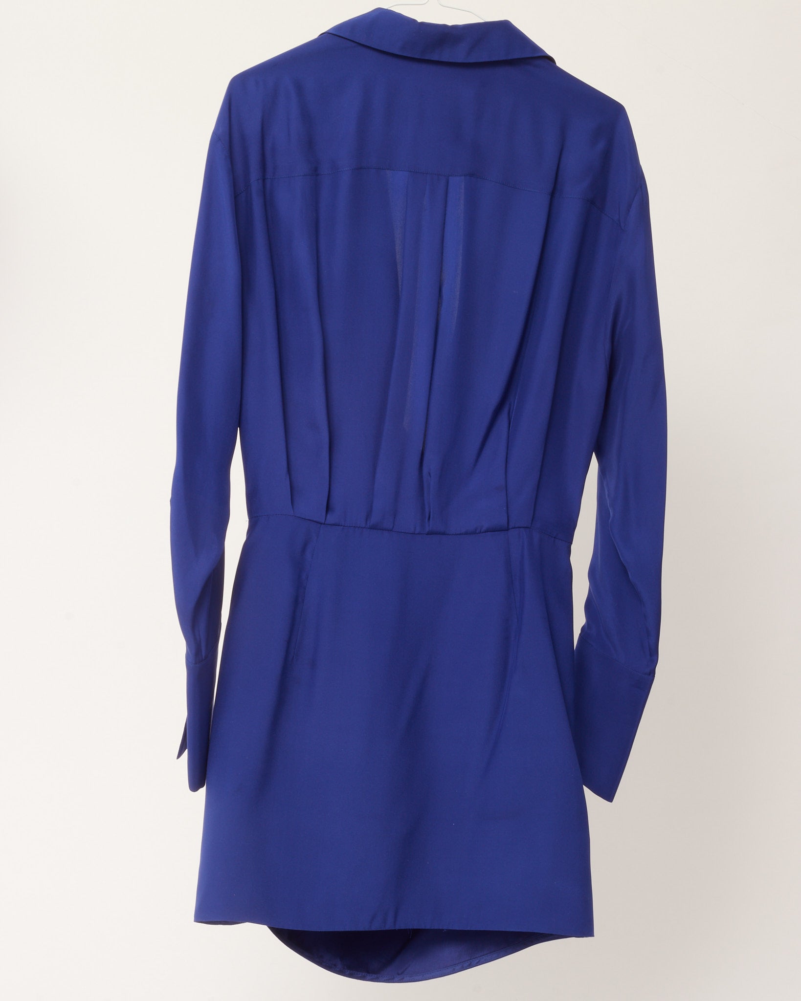 Royal Blue Silk Long Sleeve Draped Naha Short Mini Dress - L